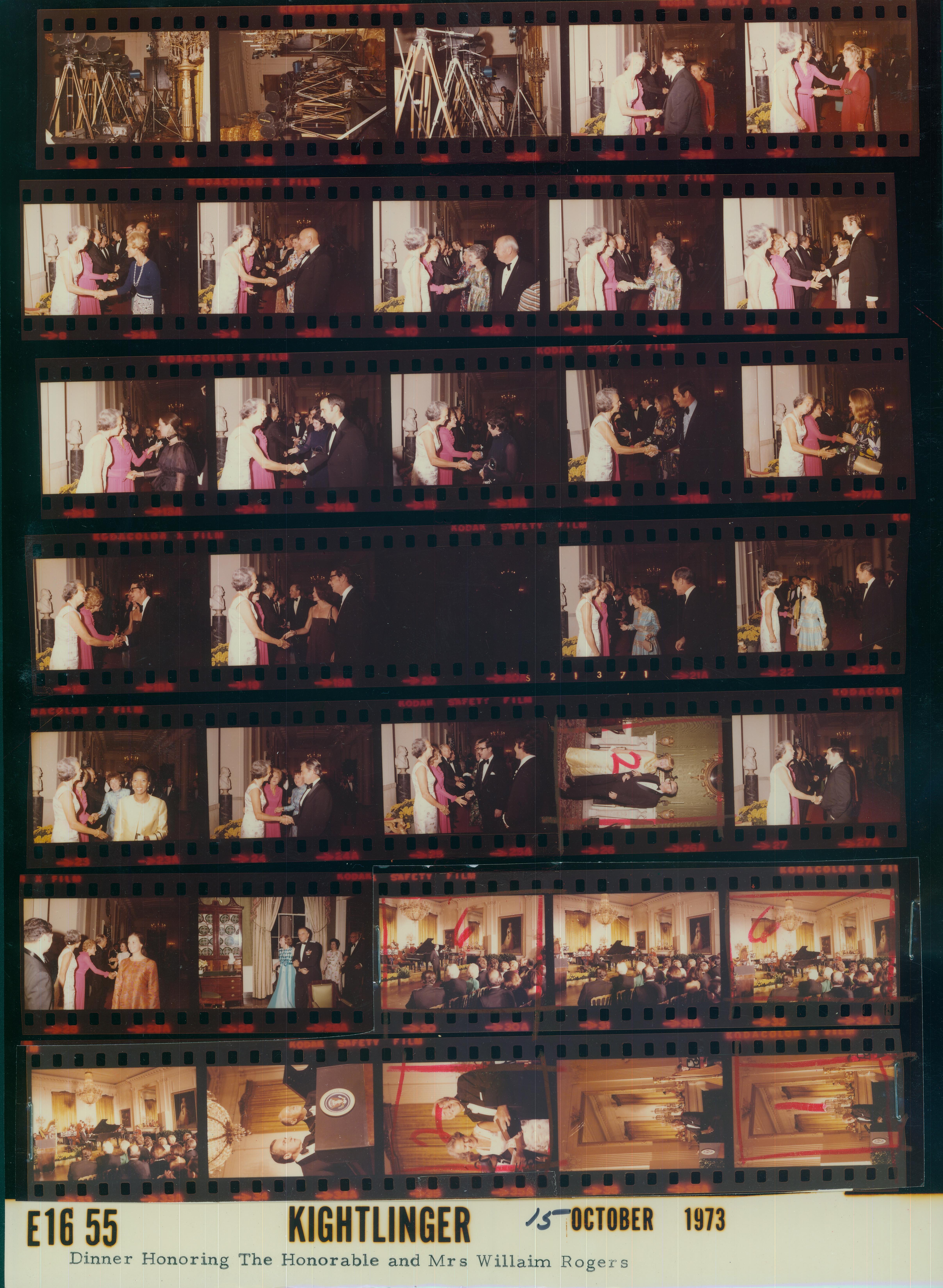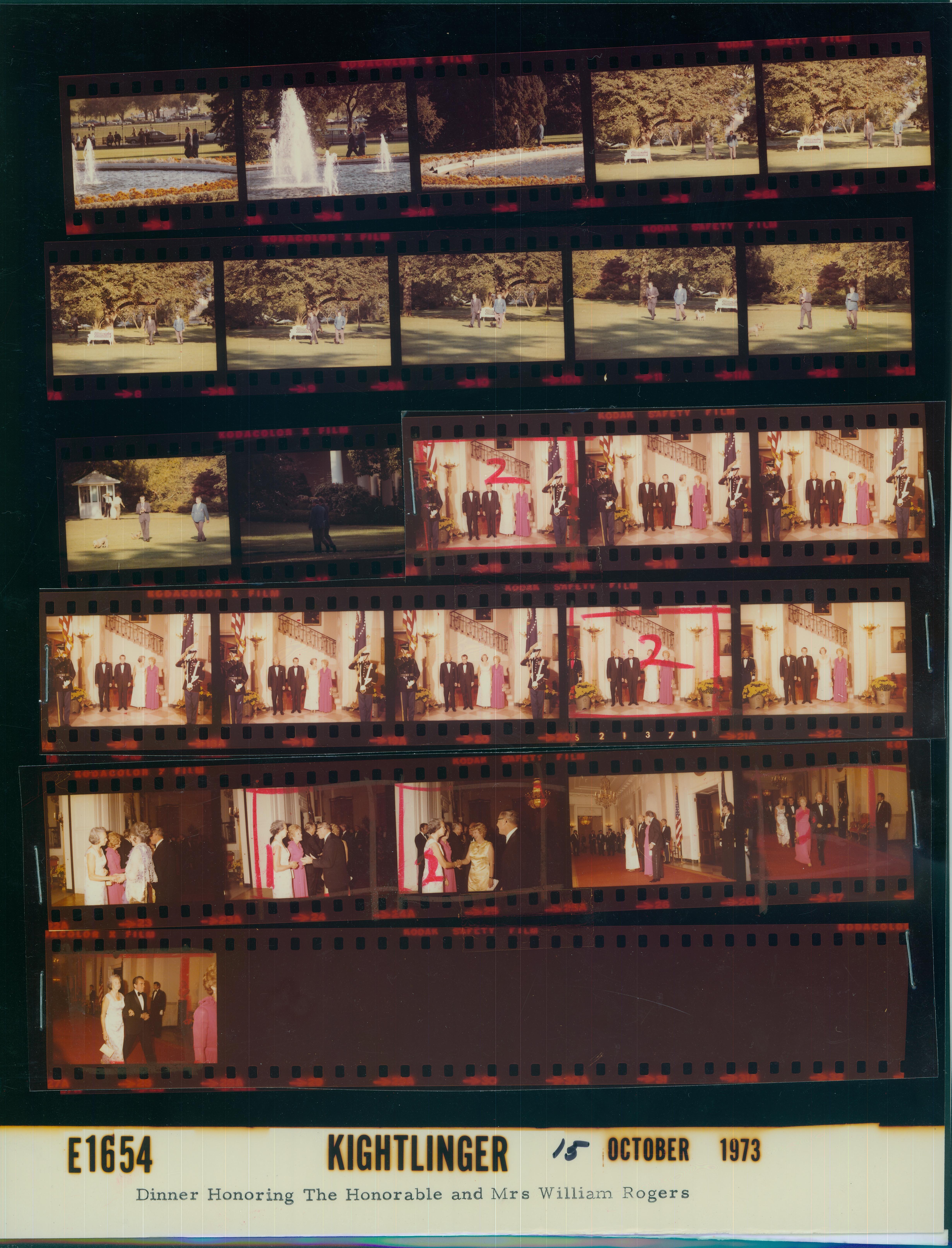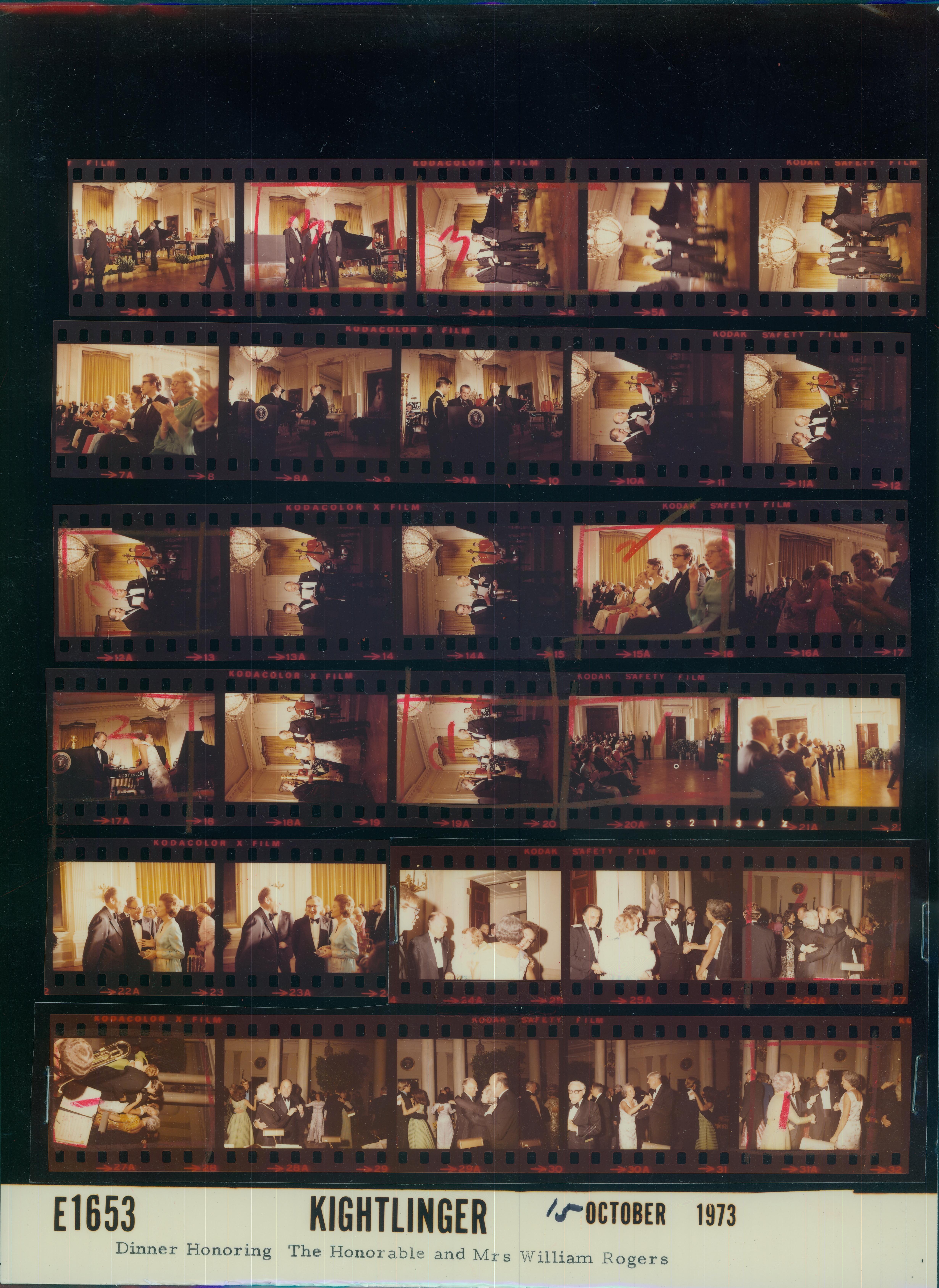 - Frame(s): WHPO-E1653-, State Dinner held in-honor of former Secretary of State William Rogers. 10/15/1973, Washington, D.C. White House, East Room.