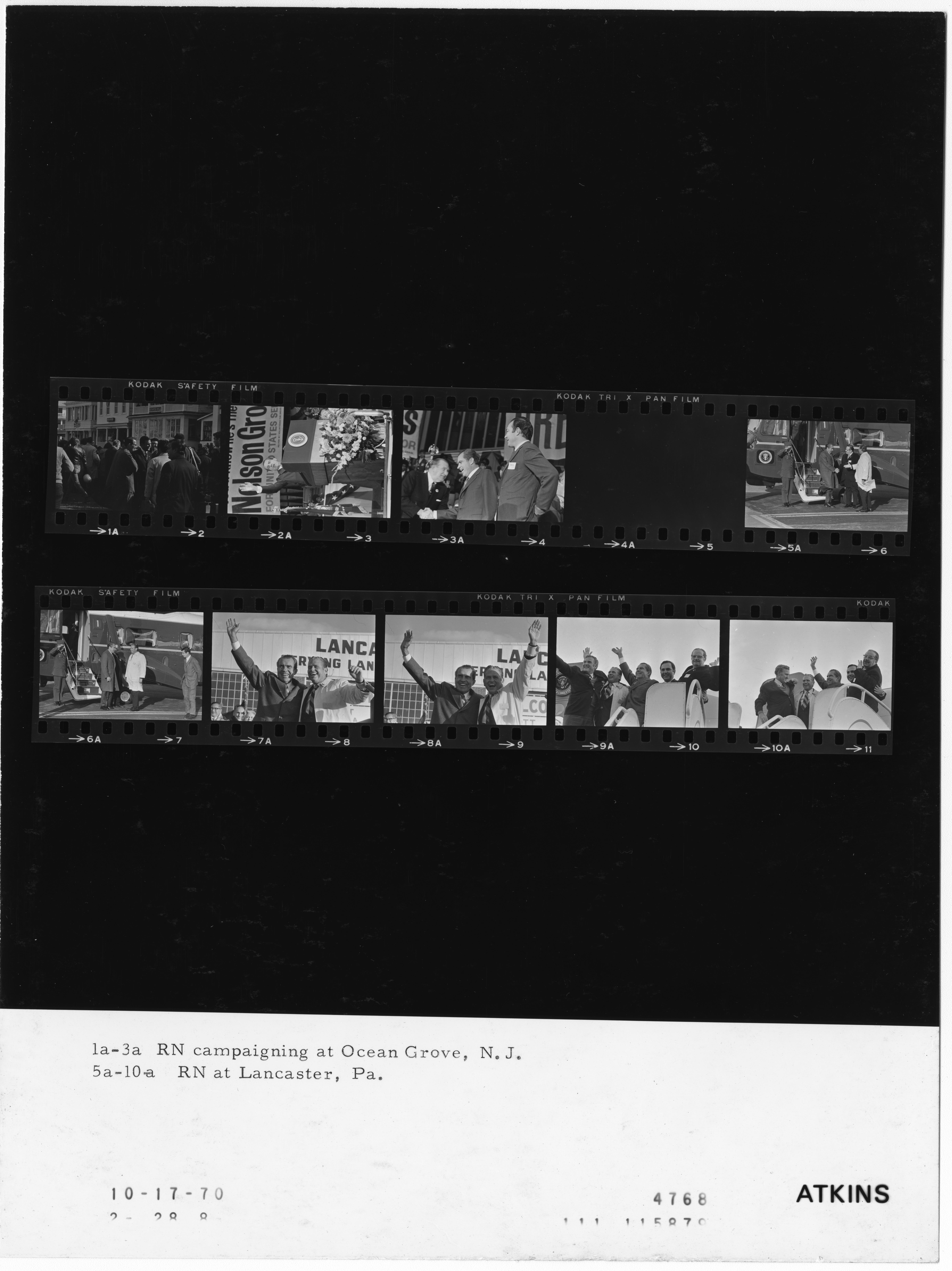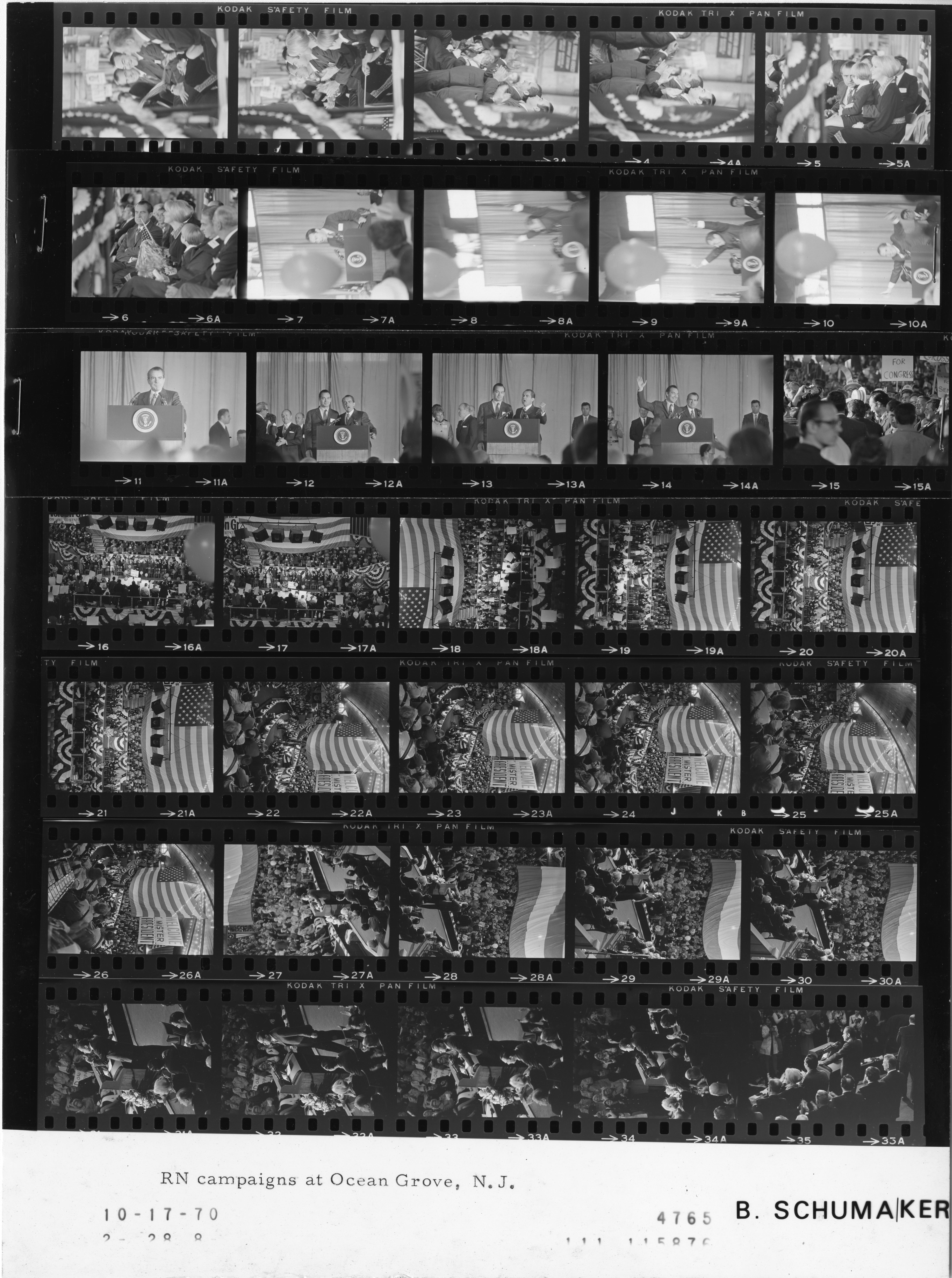 - Frame(s): WHPO-4767-01A-10A, President Nixon participating in a political rally for Senatorial Candidate, Nelson Gross, in Ocean Grove, New Jersey. 10/17/1970, Ocean Grove, New Jersey Ocean Grove Auditorium. President Nixon, dignitaries, well-wishers.