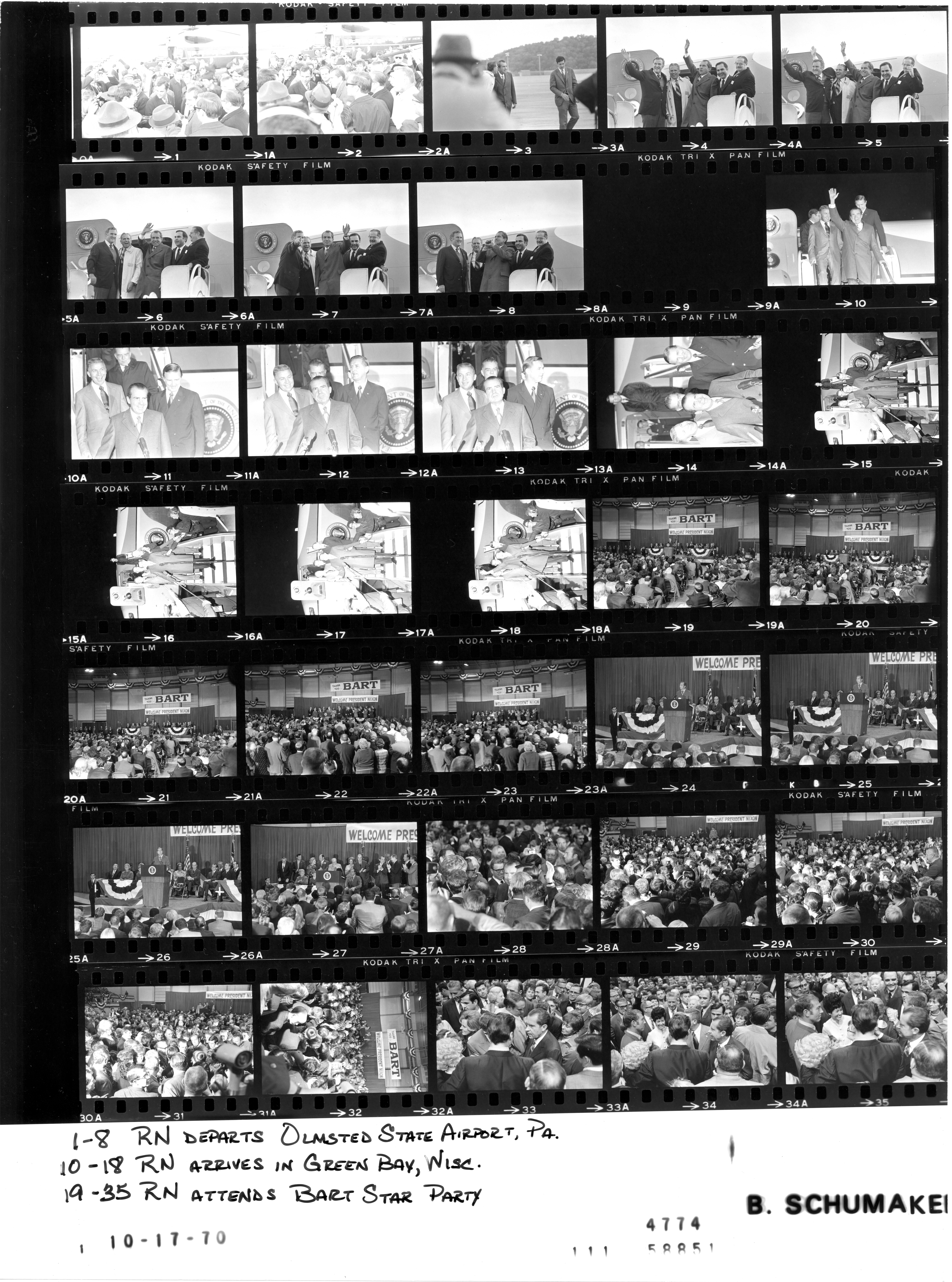 - Frame(s): WHPO-4772-02-12, President Nixon preparing to leave Green Bay. 10/17/1970, Green Bay, Wisconsin President Nixon, crowd.