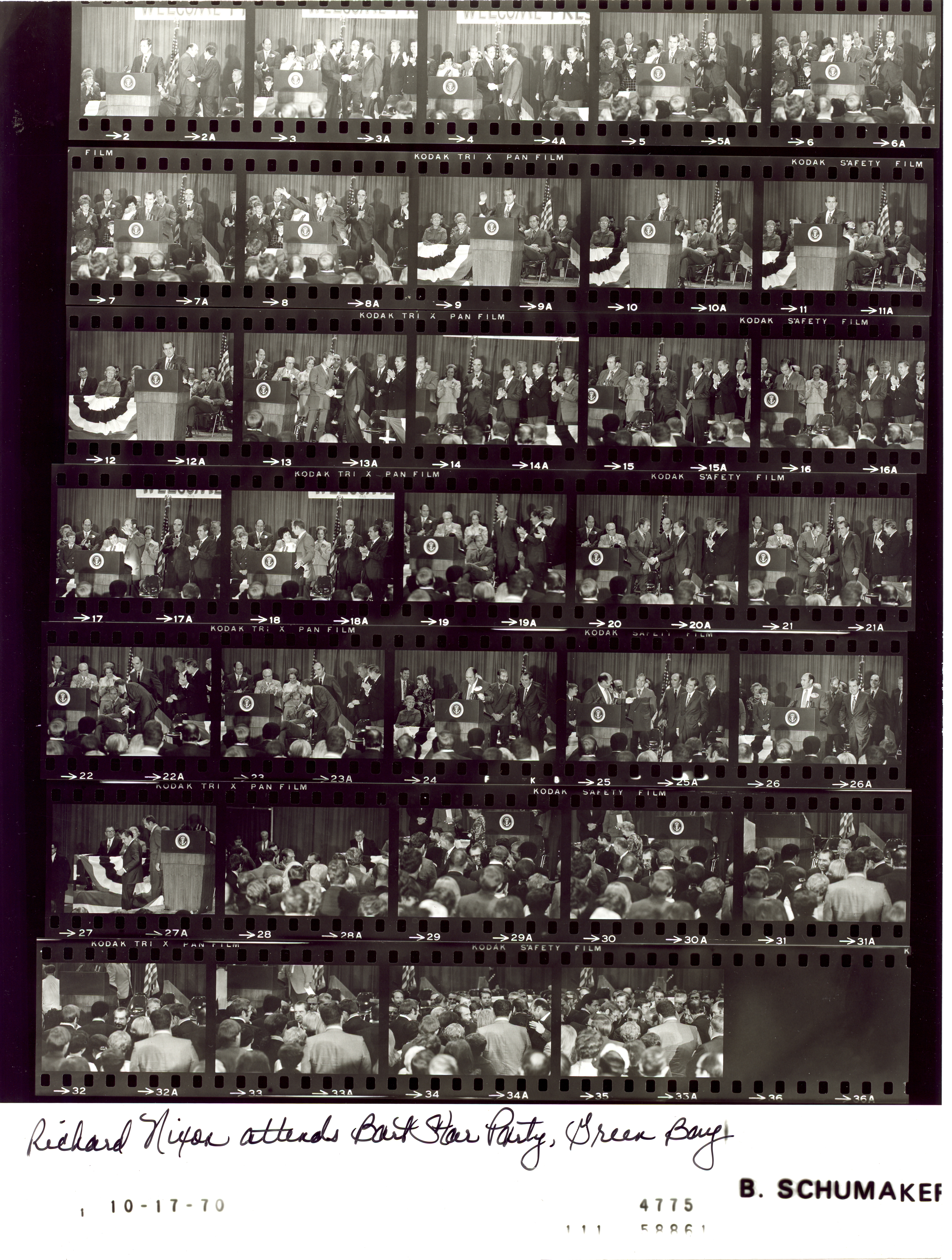 - Frame(s): WHPO-4774-27-35, President Nixon greeting crowd during party honoring Bart Starr of the Green Bay Packers football team. 10/17/1970, Green Bay, Wisconsin Brown County Auditorium. President Nixon, Bart Starr.