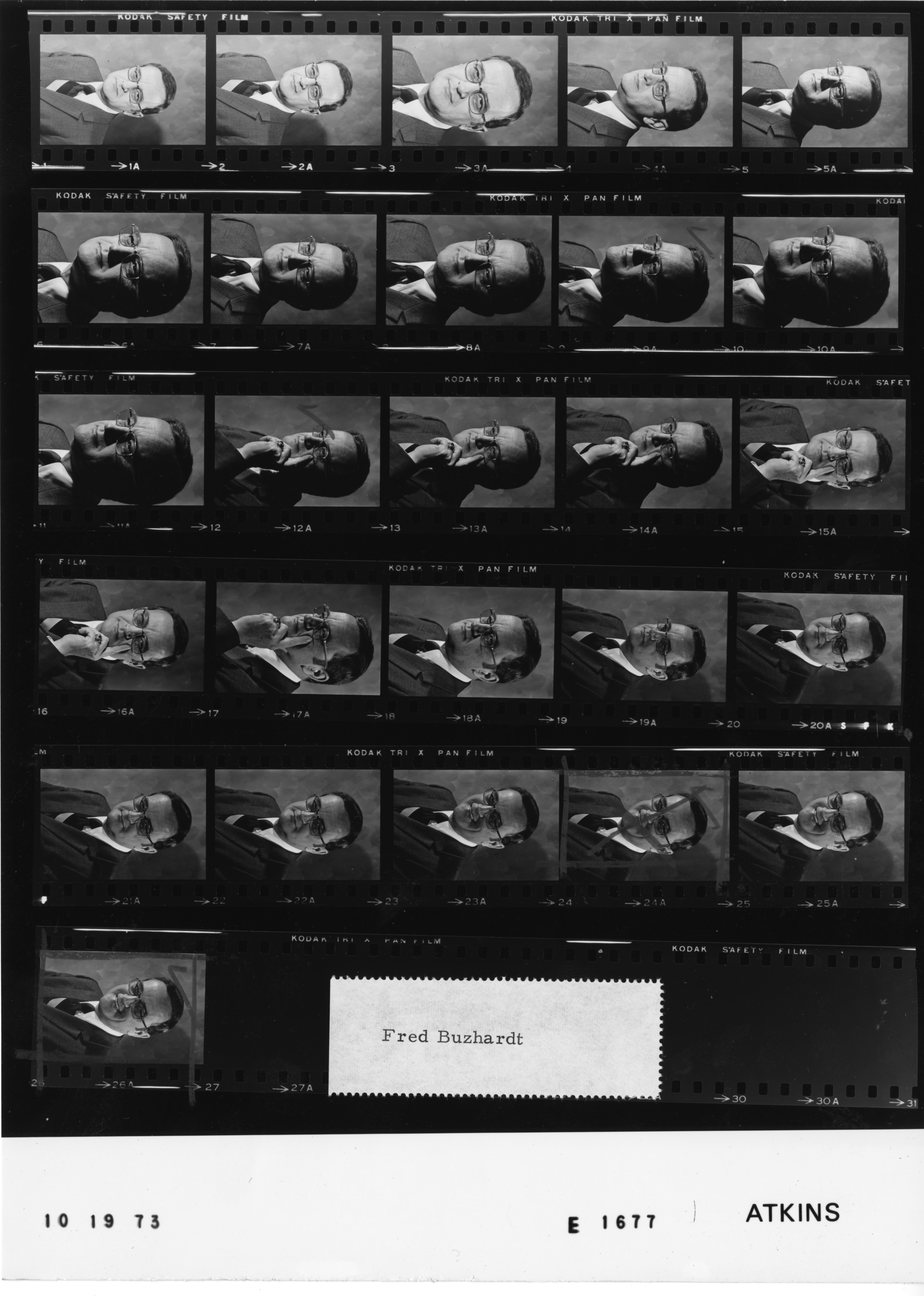 - Frame(s): WHPO-E1677-01A-26A, Closeup portrait study of Fred Buzhardt. 10/19/1973, unknown unknown. Fred Buzhardt.