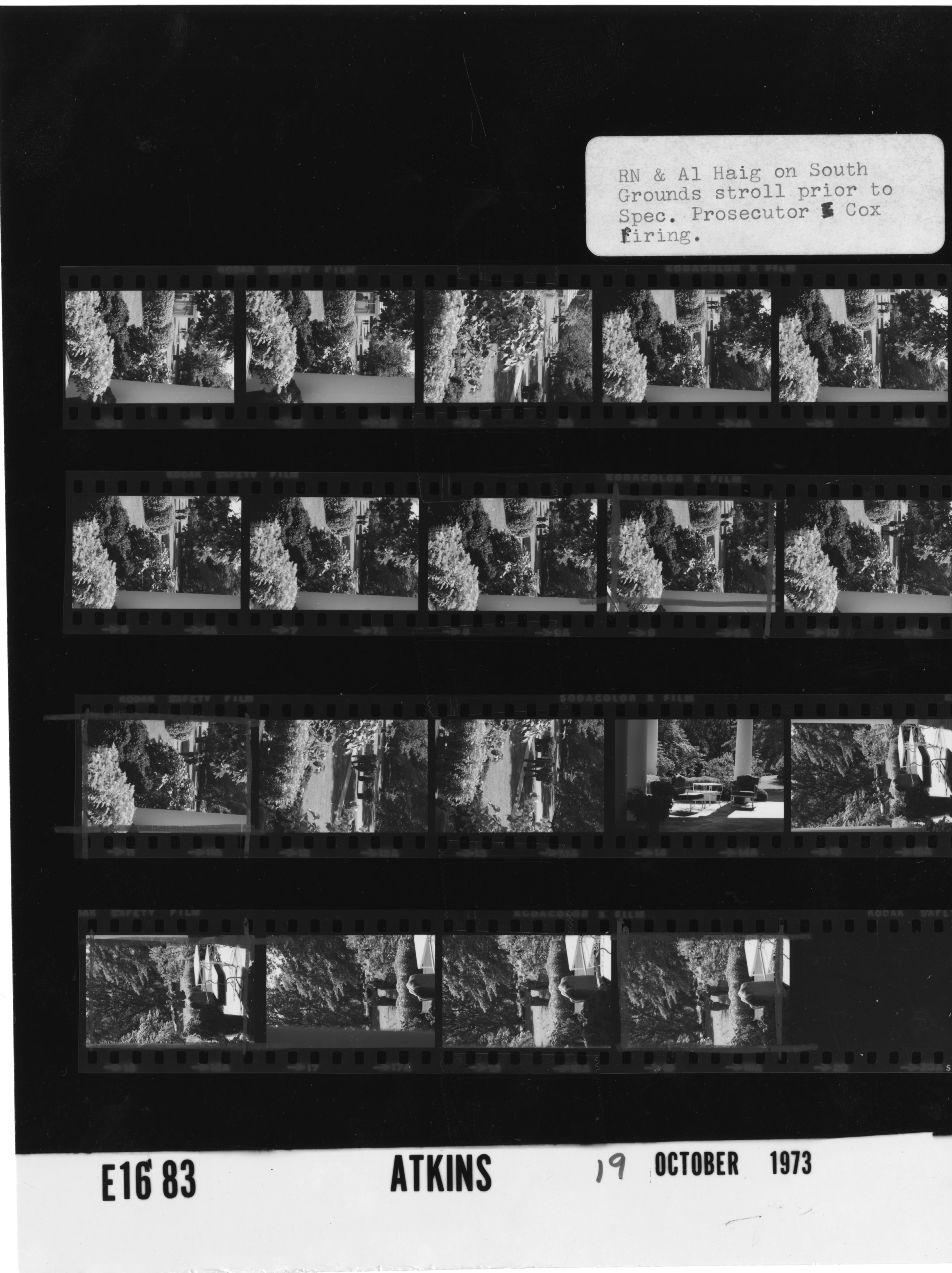 - Frame(s): WHPO-E1683-01-19, President Nixon walking the White House South Grounds area with his Chief of Staff Alexander Haig prior to the dismissal of Special Prosecutor Archibald Cox. 10/19/1973, Washington DC White House, South Grounds. President Nixon, Alexander Haig.