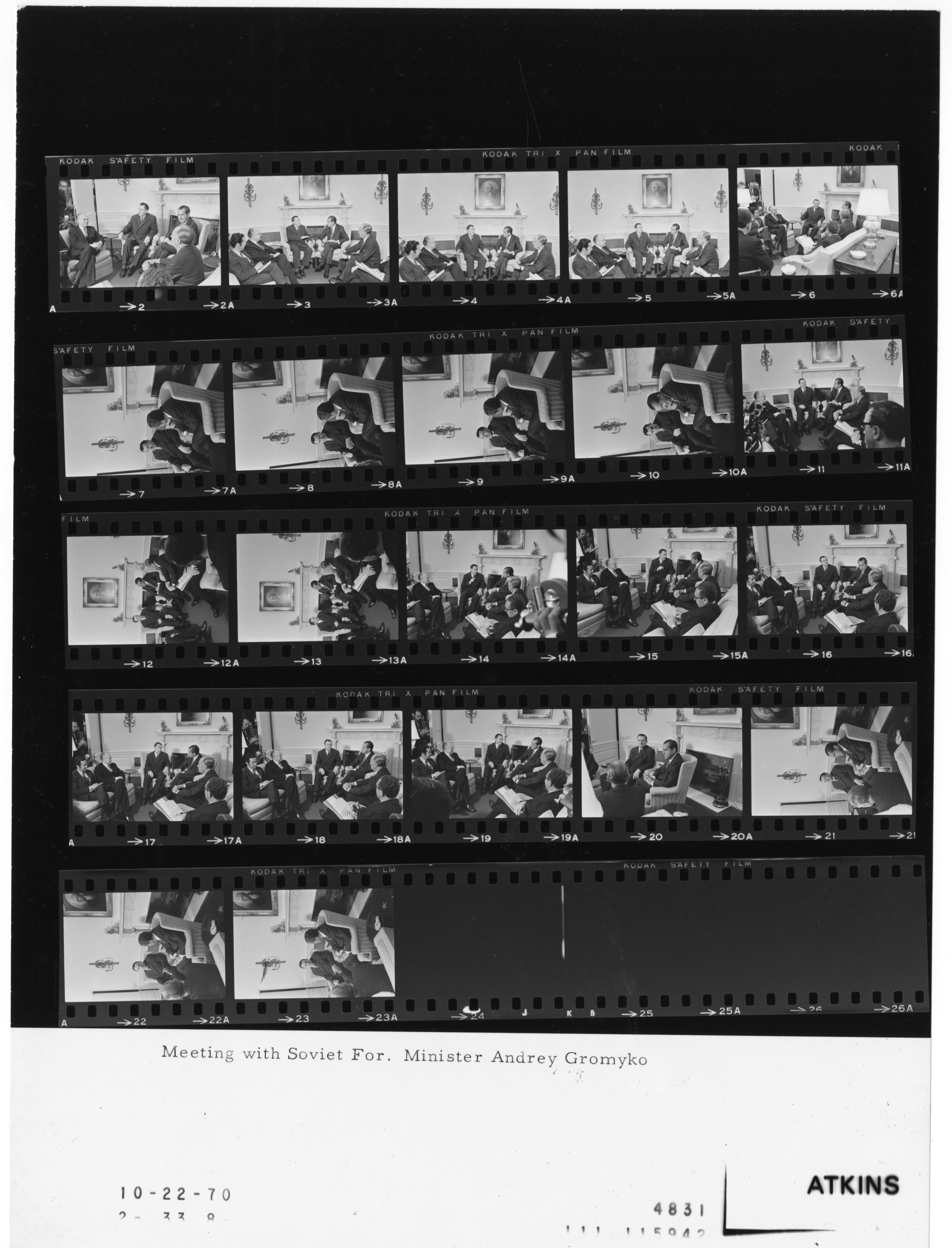 - Frame(s): WHPO-4834-, President Nixon meeting with Soviet Foreign Minister Andrei Gromyko. 10/22/1970, Washington, D.C. President Nixon, Andrei Gromyko.