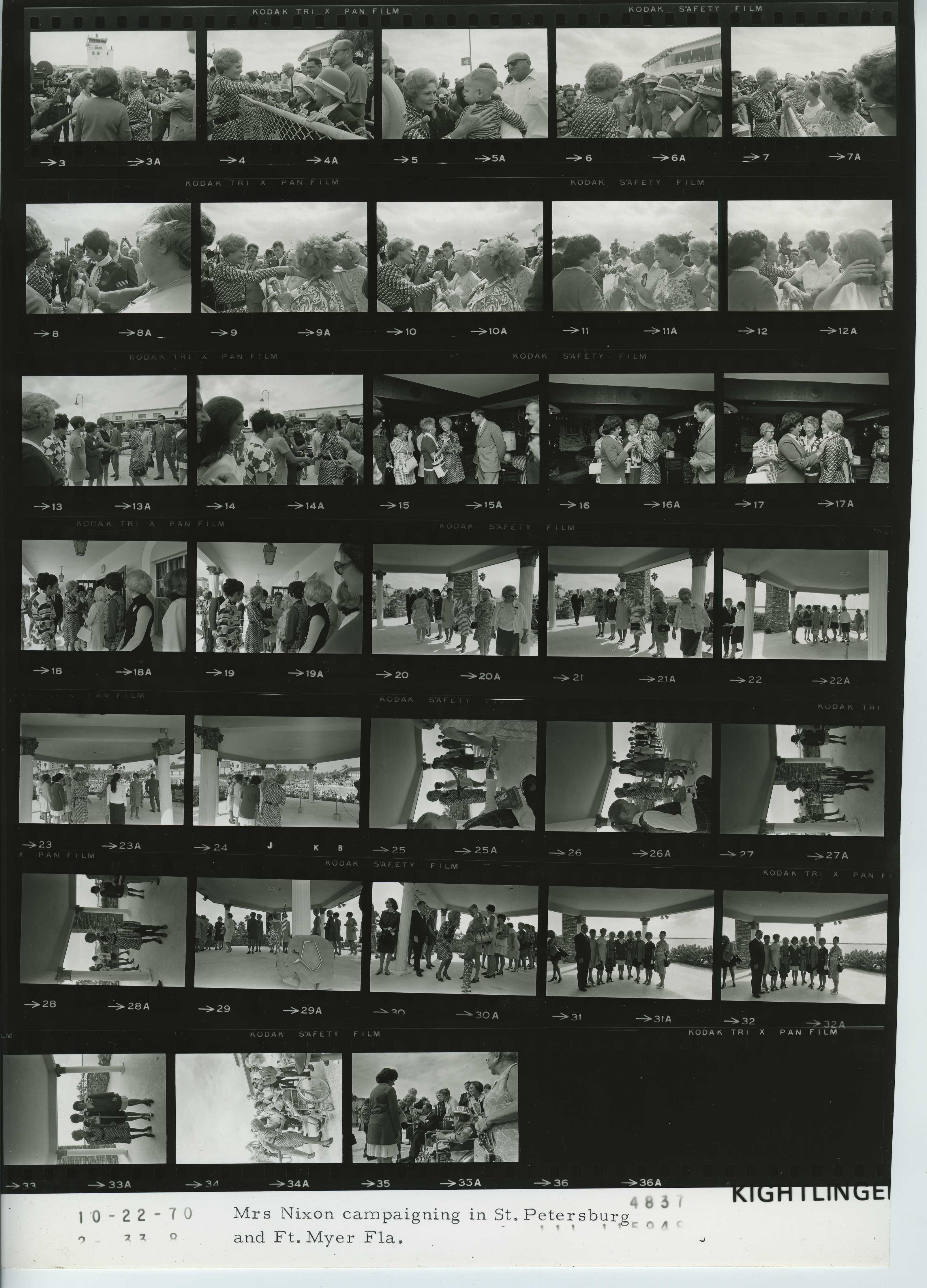 - Frame(s): WHPO-4838-, Pat Nixon campaigning in Florida. 10/22/1970, St. Petersburg, Ft. Meyer, Florida