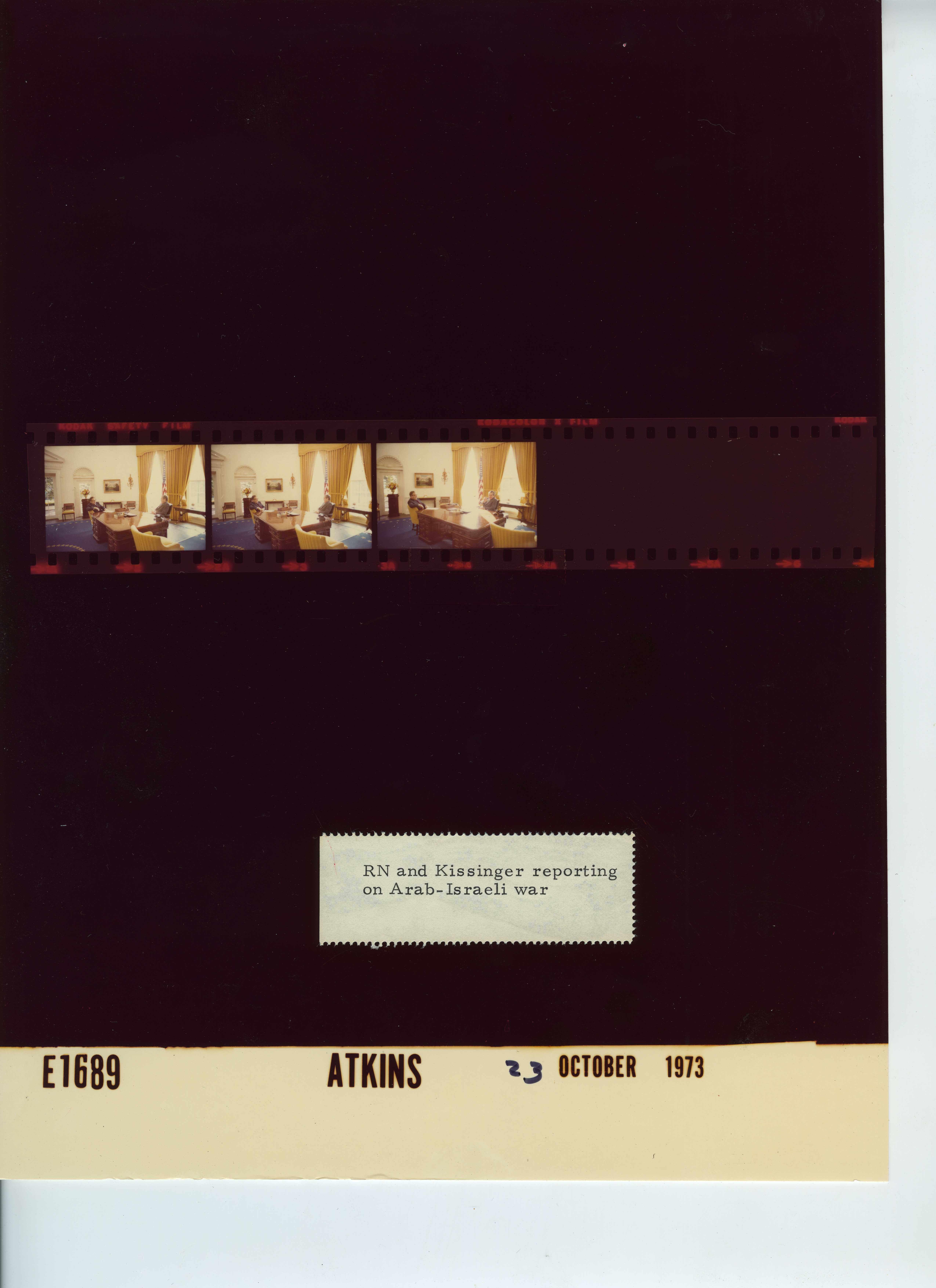 - Frame(s): WHPO-E1690-, President Nixon discusses Arab-Israeli War with Secretary of State Henry Kissinger. 10/23/1973, Washington DC White House, Oval Office.