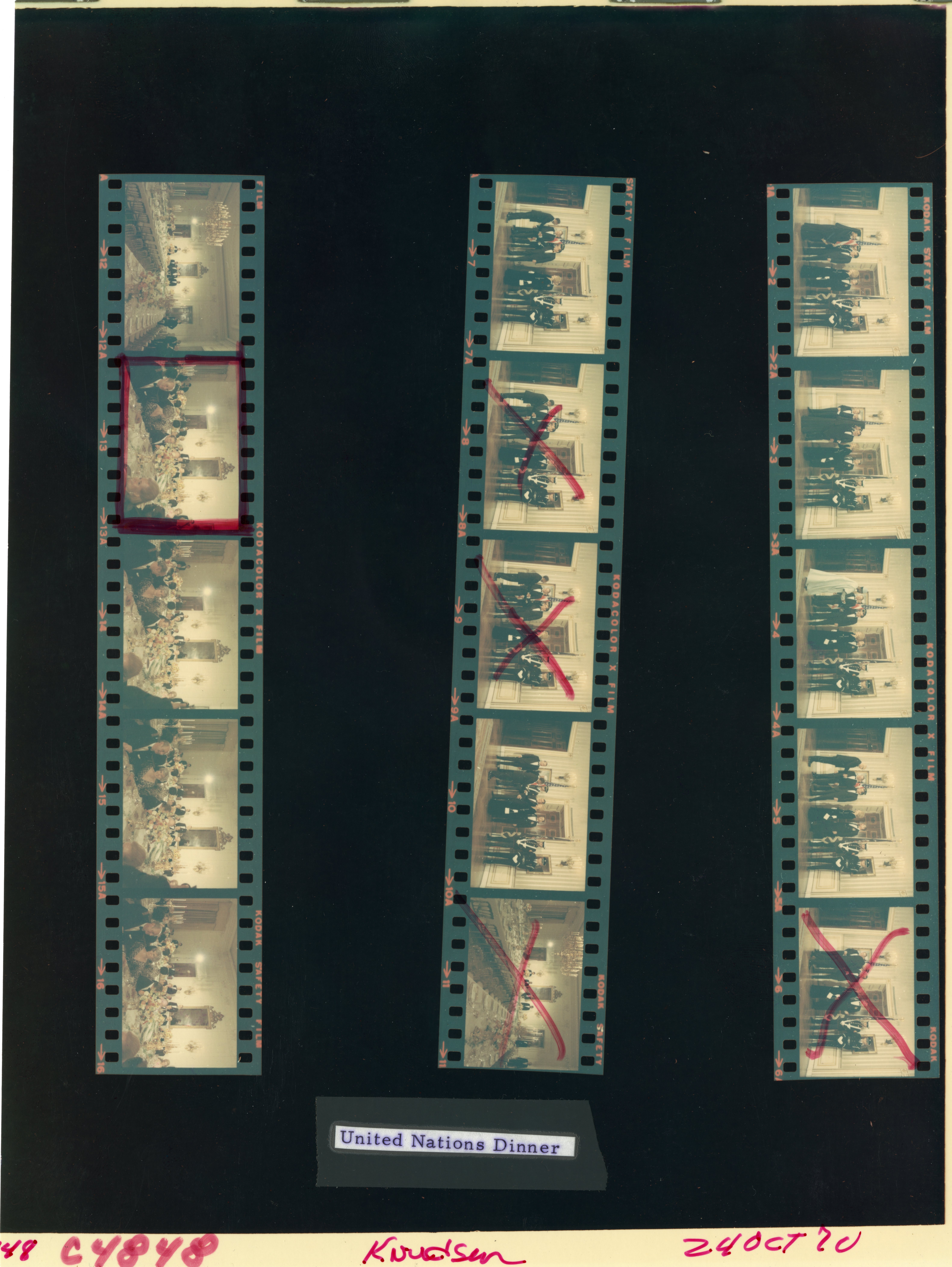 - Frame(s): WHPO-4848-13-16, U.N. delegates from many nations seated and dining at a White House state dinner honoring the 25th Anniversary of the United Nations. 10/24/1970, Washington, D.C. White House, State Dining Room. President Nixon, Pat Nixon, U.N. Delegates.