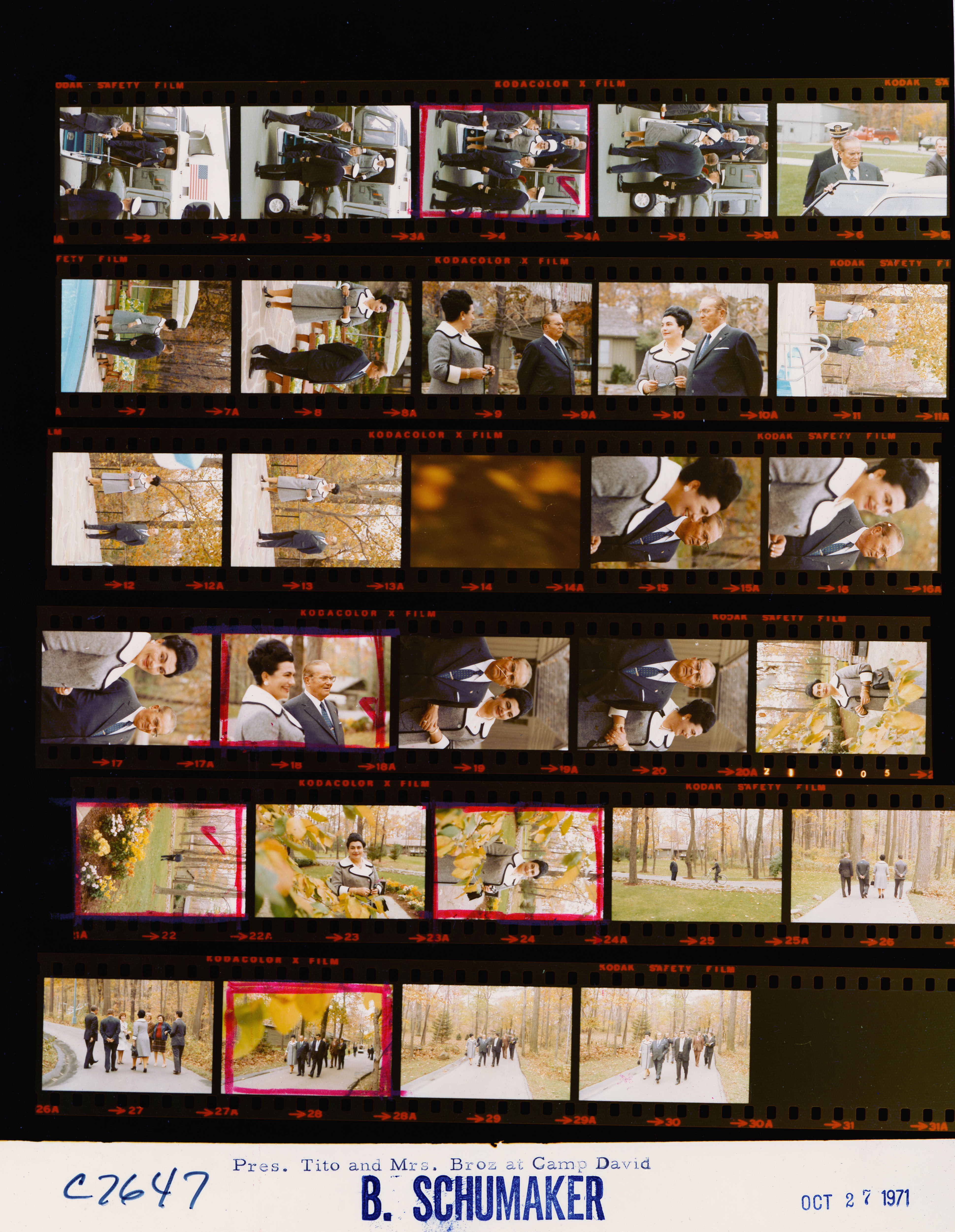 - Frame(s): WHPO-7647-06-30, Yugoslavian President Josip Broz Tito and Mrs. Josip Broz Tito touring Camp David. 10/27/1971, Camp David, Maryland grounds. Josip Broz Tito, Mrs. Josip Broz Tito, military personnel, aides.