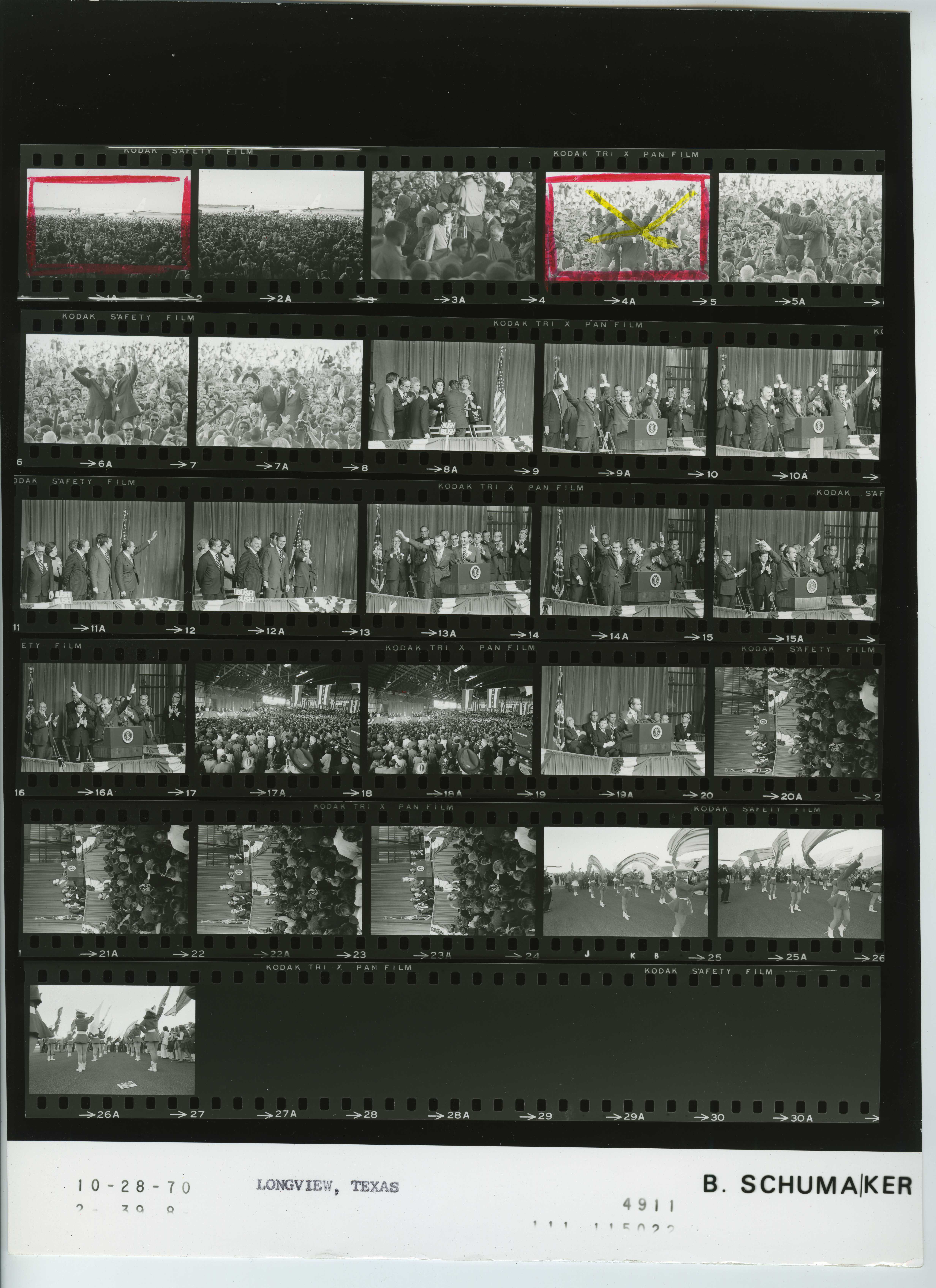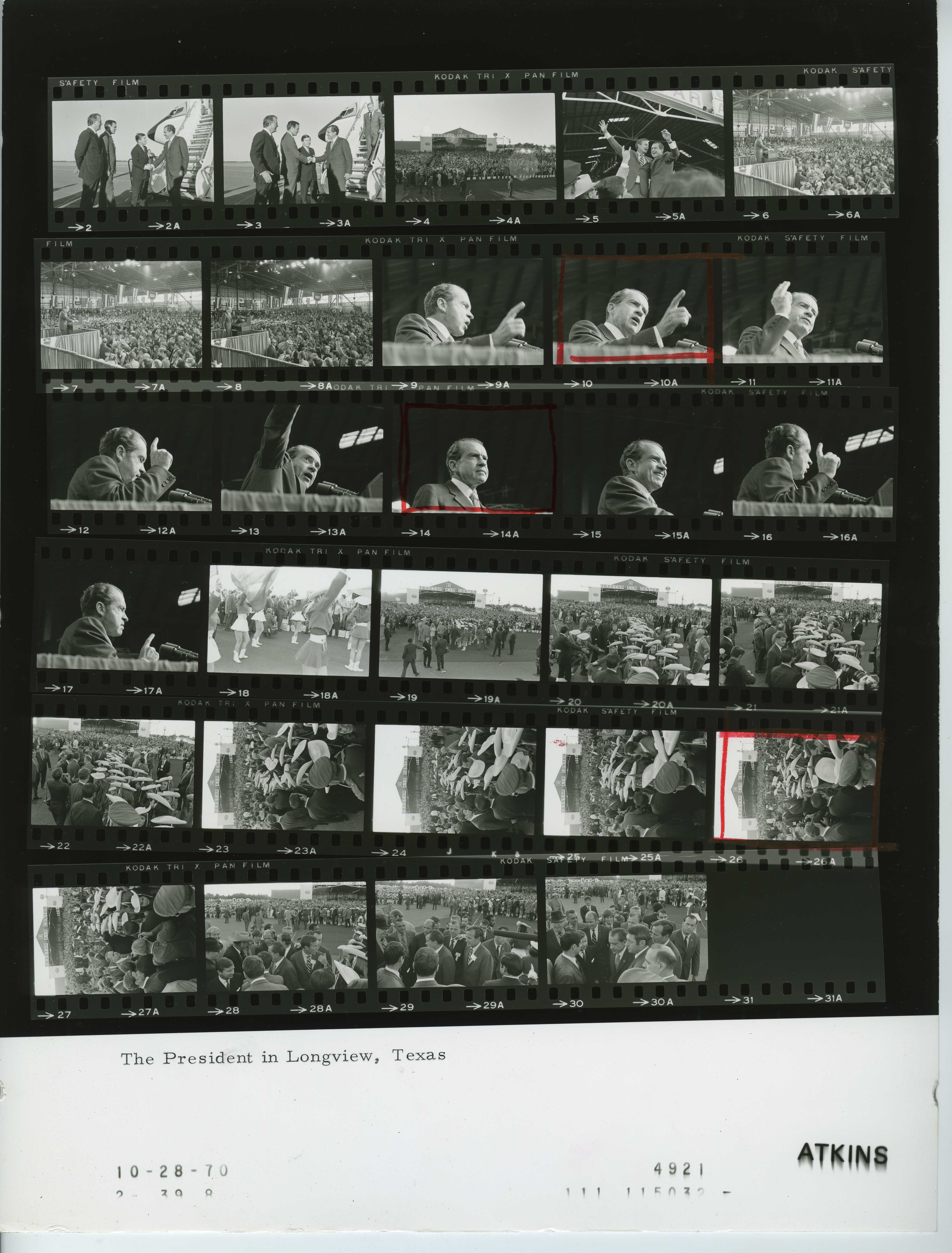- Frame(s): WHPO-4921-, President Nixon arriving at Gregg County Airport, Longview, Texas for Political Rally for Congressman George H. W. Bush and Gubernatorial Candidate Paul Eggers. Nixon speaking at Bush rally. 10/28/1970, Longview, Texas Gregg County Airport. President Nixon, Congressman George Bush, Gubernatorial Candidate Paul Eggers and other rally participants.