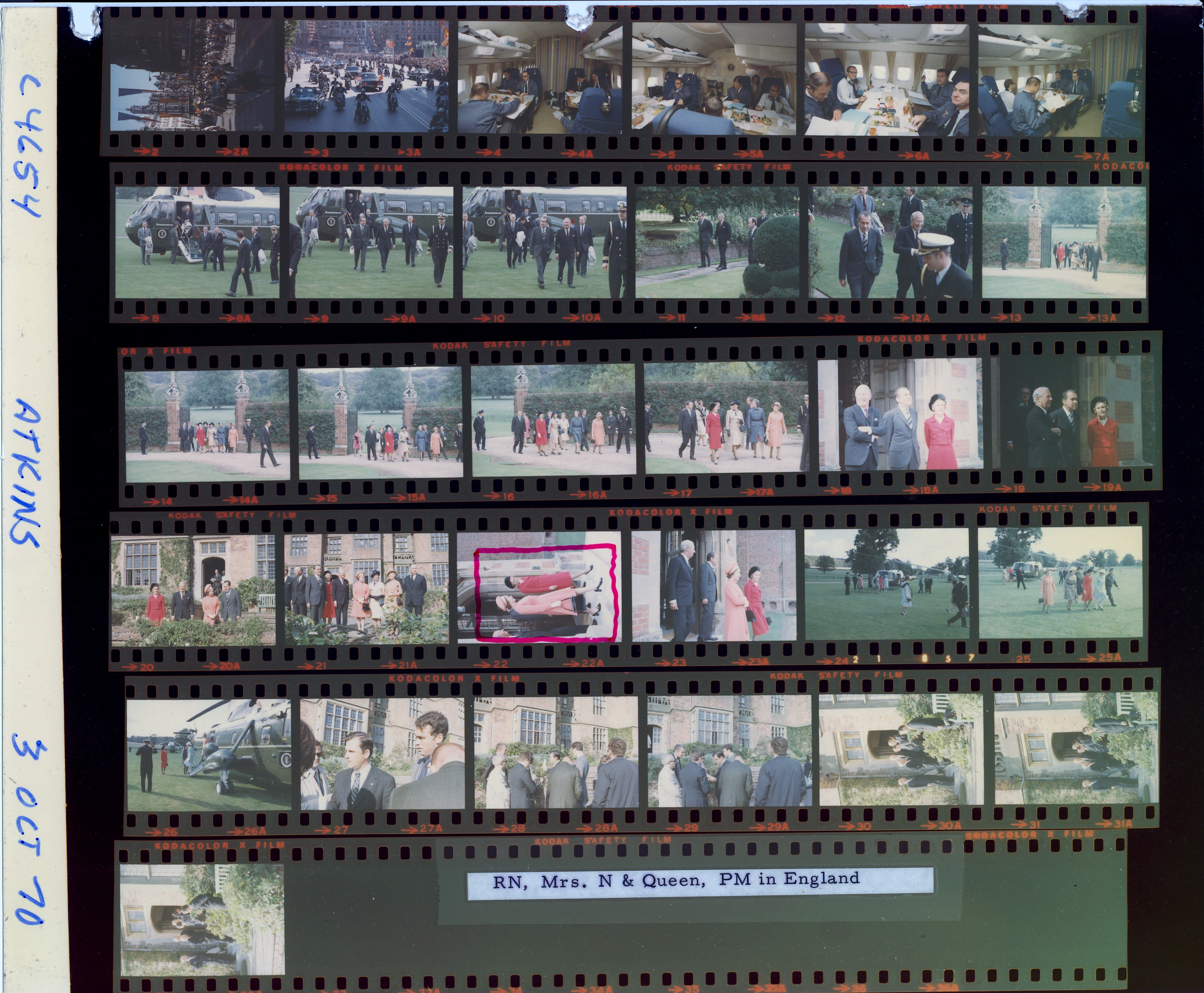 - Frame(s): WHPO-4664-, President Nixon and Pat Nixon and party arrive at Chequers by helicopter from Heathrow. 10/3/1970, Buckinghamshire, England Chequers, helicopter helipad. President Nixon and party.