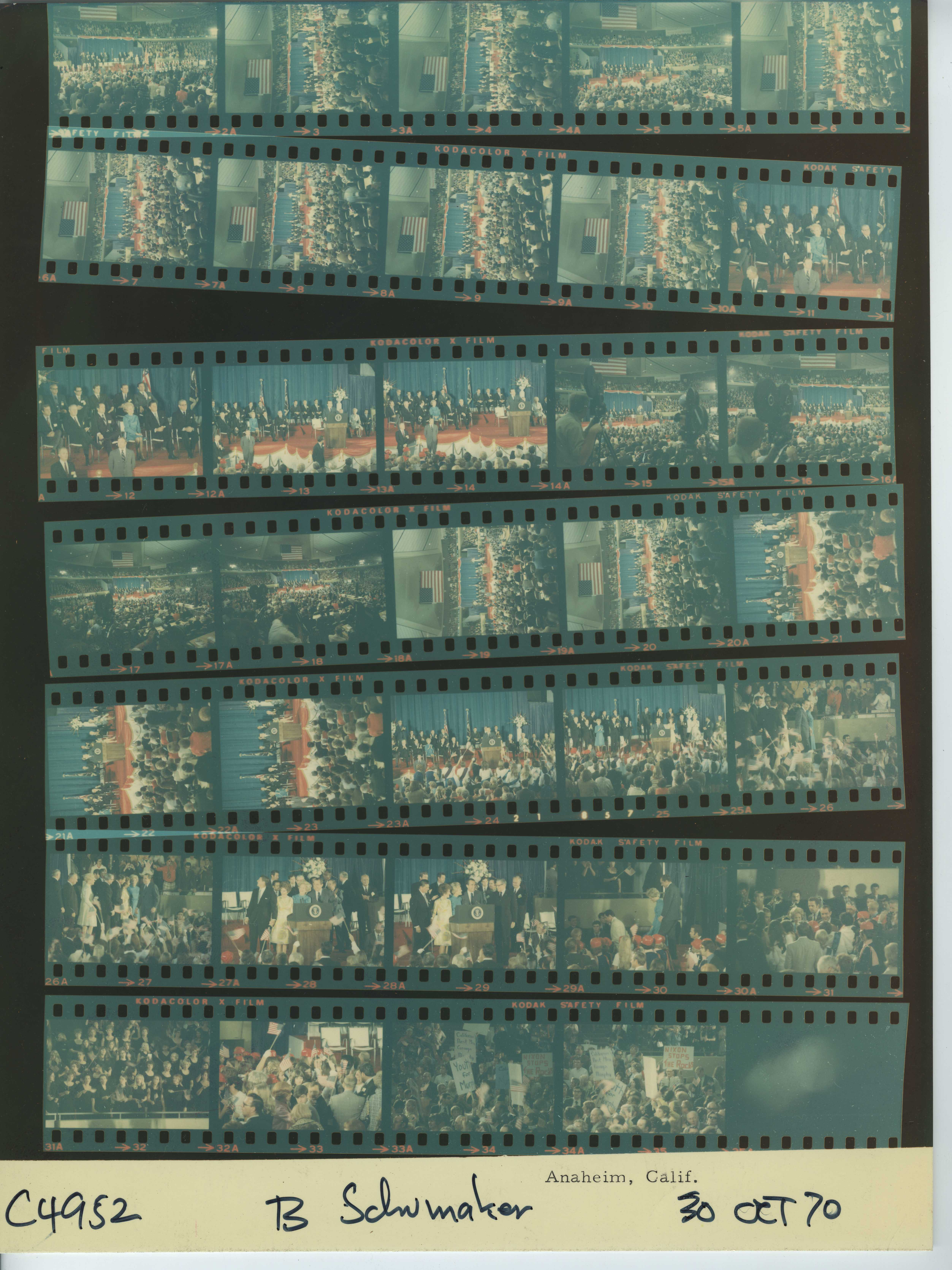 - Frame(s): WHPO-5017-, President Nixon and Pat Nixon attend political rally in Anaheim for Governor Ronald Reagan and Senator George Murphy. 10/30/1970, Anaheim, California Anaheim Convention Center. President Nixon, Pat Nixon, Ronald Reagan, Senator George Murphy, rally participants.