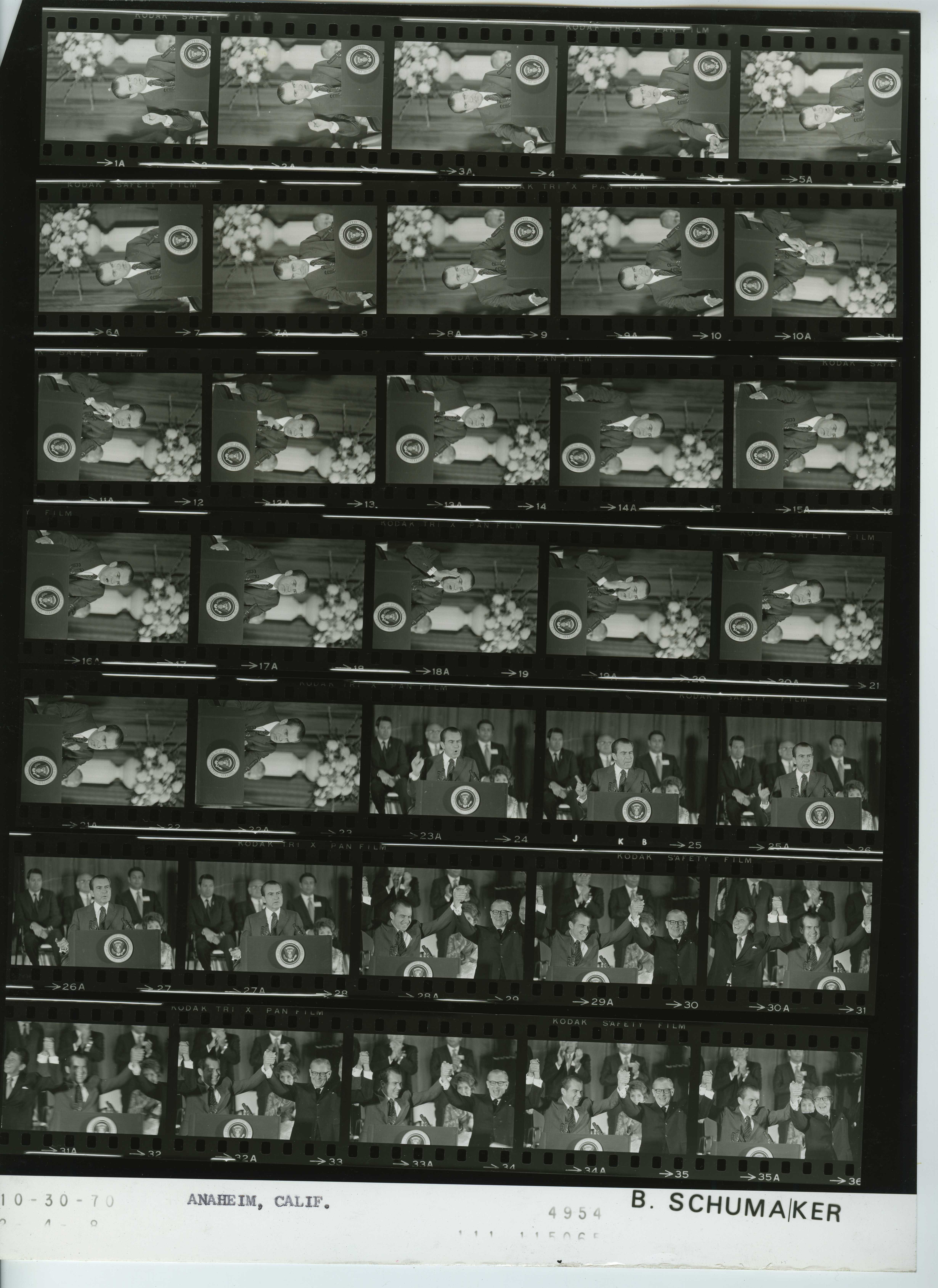 - Frame(s): WHPO-4954-, President Nixon and Pat Nixon attend political campaign rally for Governor Ronald Reagan and Senator George Murphy. President Nixon speaking at the rally. 10/30/1970, Anaheim, California Anaheim Convention Center. President Nixon, Pat Nixon, Governor Ronald Reagan, George Murphy, and platform guests.