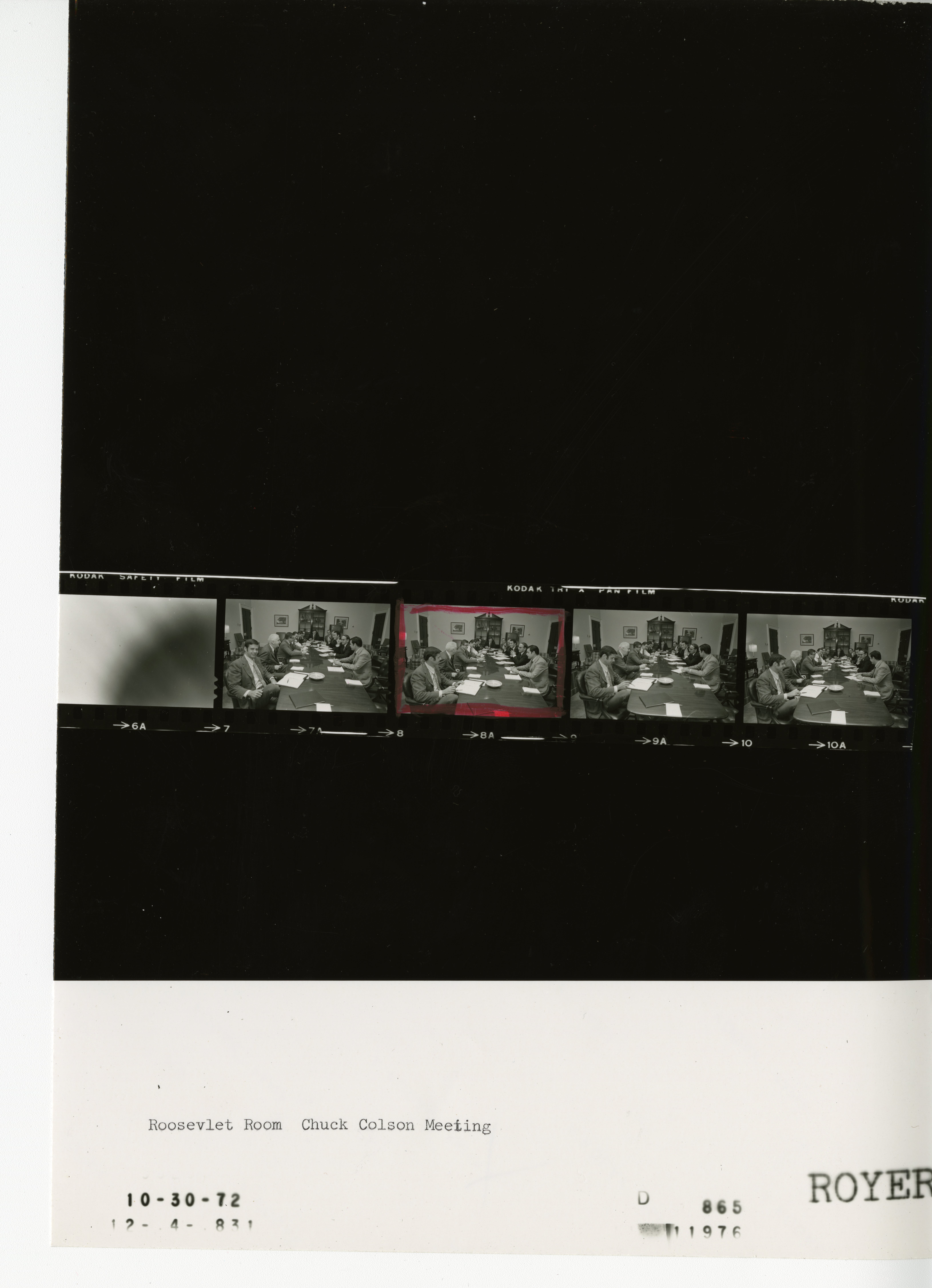 - Frame(s): WHPO-D0865-, Chuck Colson and others seated around a conference table during a meeting. 10/30/1972, Washington, D.C. White House, Roosevelt Room. Charles W. Colson, unidentified men.