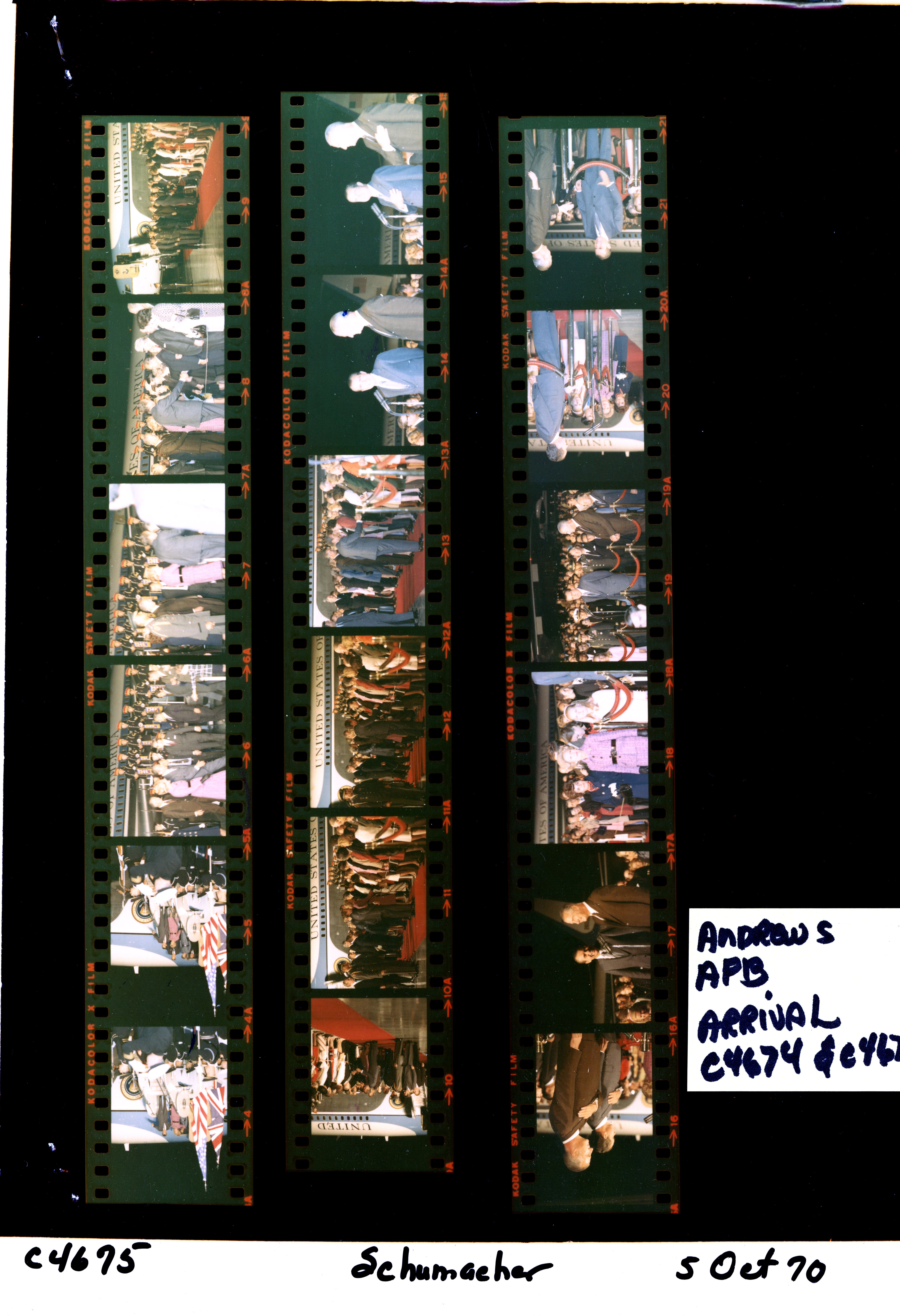 - Frame(s): WHPO-4675-, The President and the First Lady participate in an arrival ceremony at Andrews Air Force Base. 10/5/1970, Andrews Air Force Base, Maryland Andrews Air Force Base, Maryland. President Nixon, Pat Nixon, Vice-President Spiro Agnew, Miss Tricia Nixon, Henry A. Kissinger, National Security Advisor, Daniel Moynihan and other unidentified welcoming group.