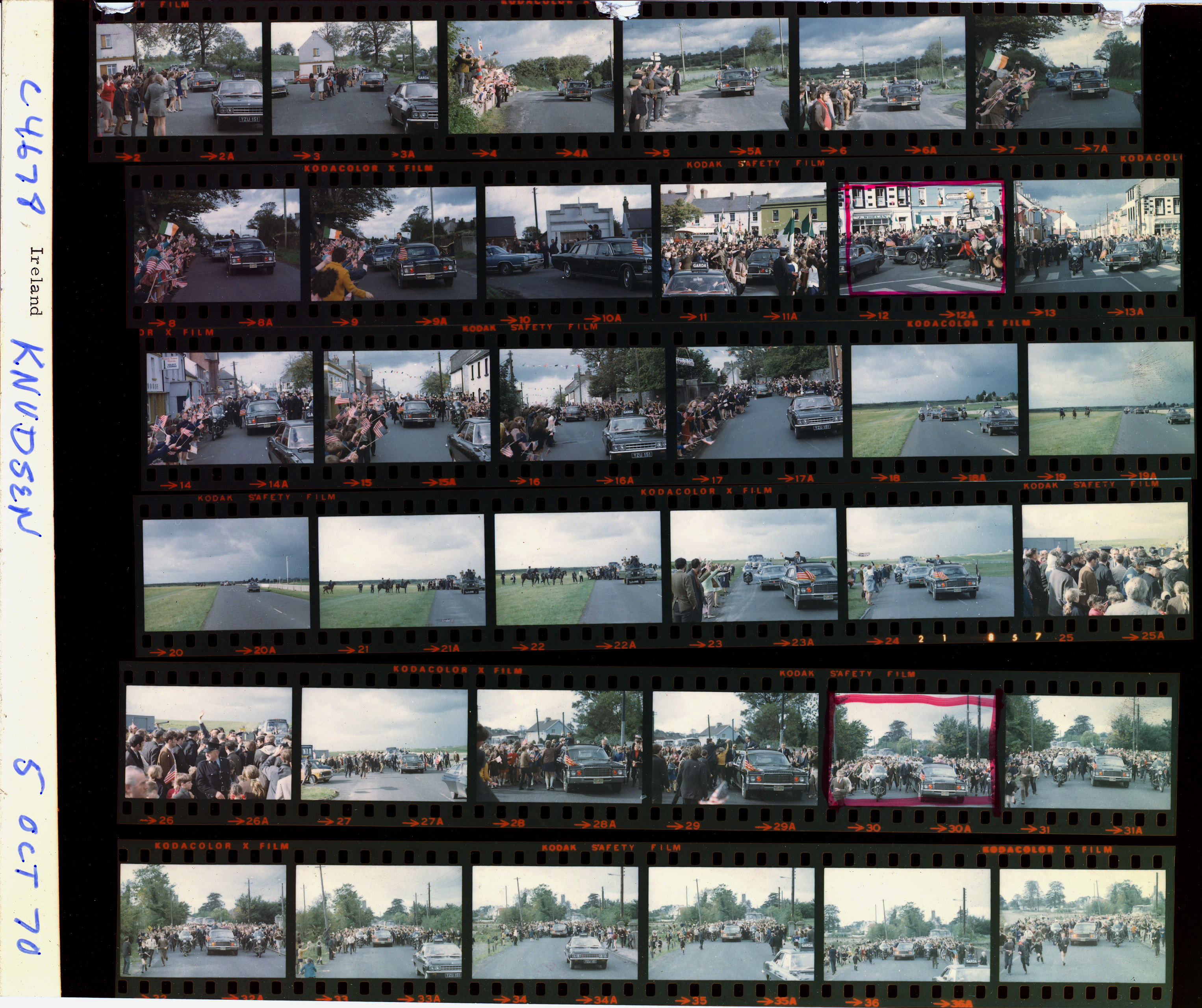 - Frame(s): WHPO-4678-02-10, 17-18, President Nixon, Pat Nixon, and party drive by car from Timahoe, through the towns of Kildare, Newbridge, and Naas on their way to the Naas Racetrack. 10/5/1970, Naas, Ireland Naas Racetrack, Naas, Ireland. President Nixon, Pat Nixon and the Presidential party.