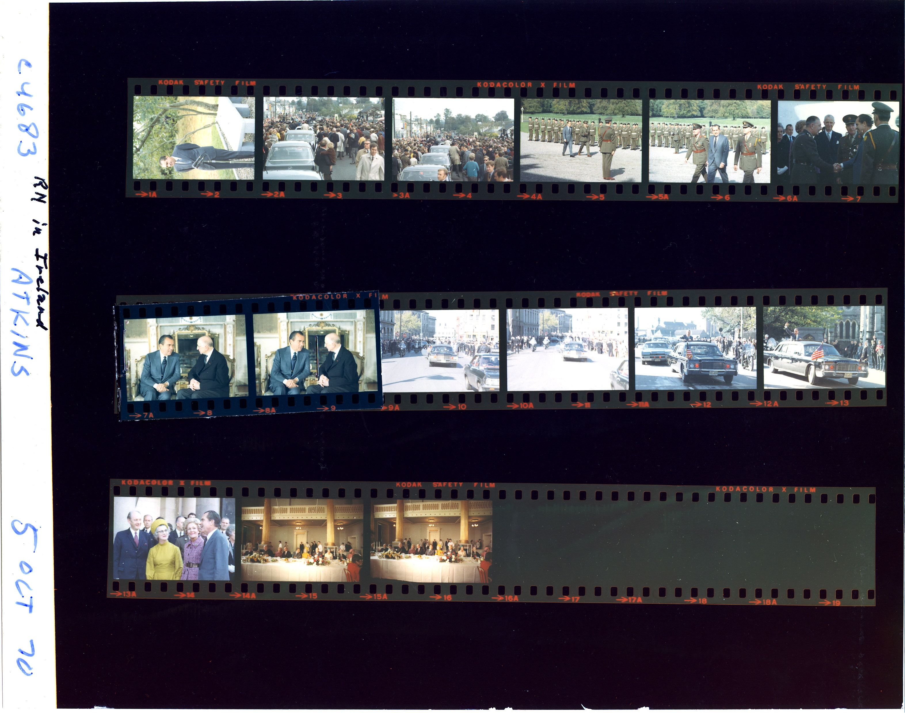 - Frame(s): WHPO-4683-07, President Nixon greeting unidentified military officials after reviewing the troops, during the arrival ceremony at Dublin Castle in Ireland. 10/5/1970, Dublin, Ireland Dublin Castle. President Nixon, unidentified military officials.