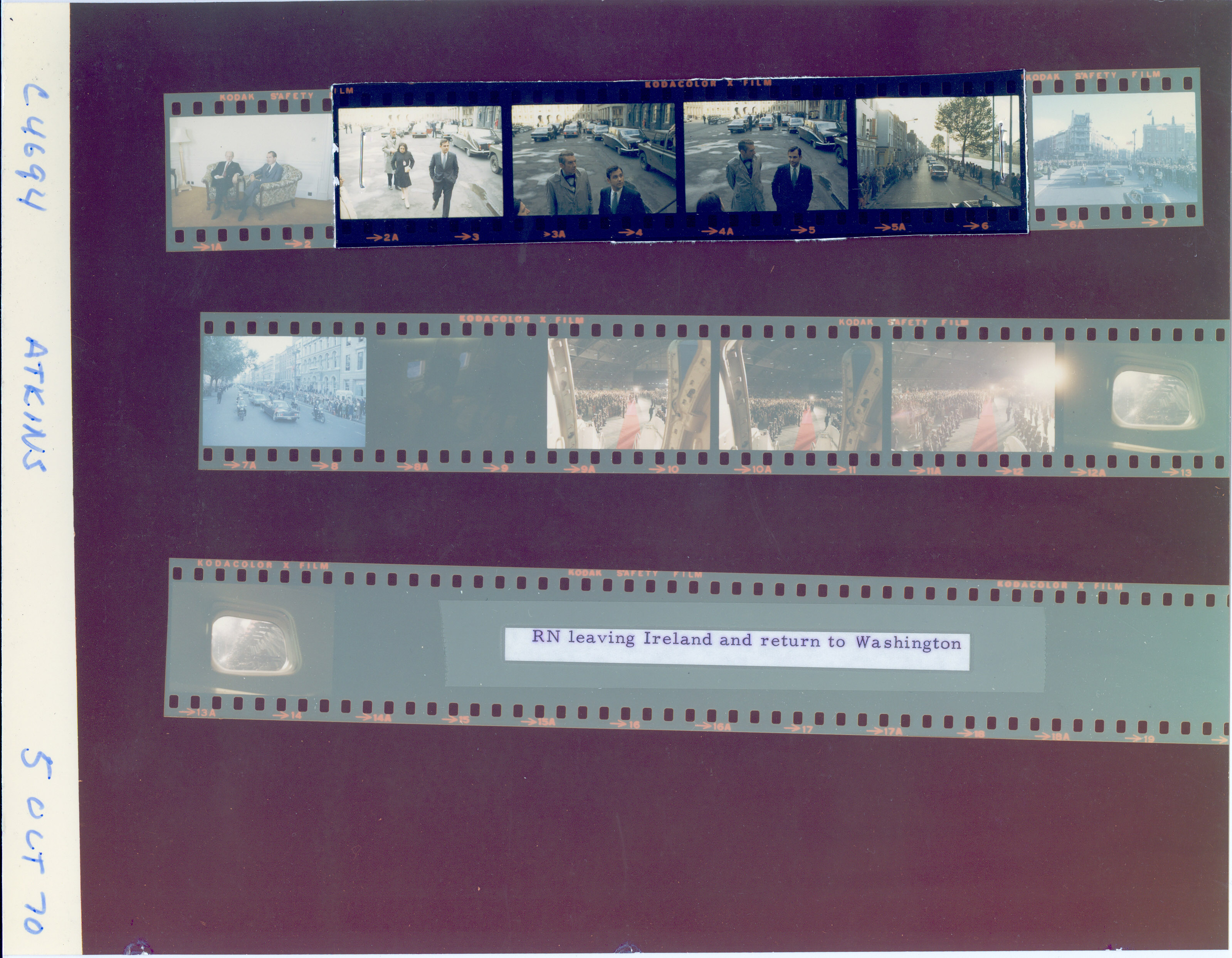 - Frame(s): WHPO-4694-, President Nixon and the Presidential Party participate in a departure ceremony at the Dublin Airport. 10/5/1970, Dublin, Ireland Dublin Airport. The Presidential party, Irish dignitaries and the Military Honor Guard.