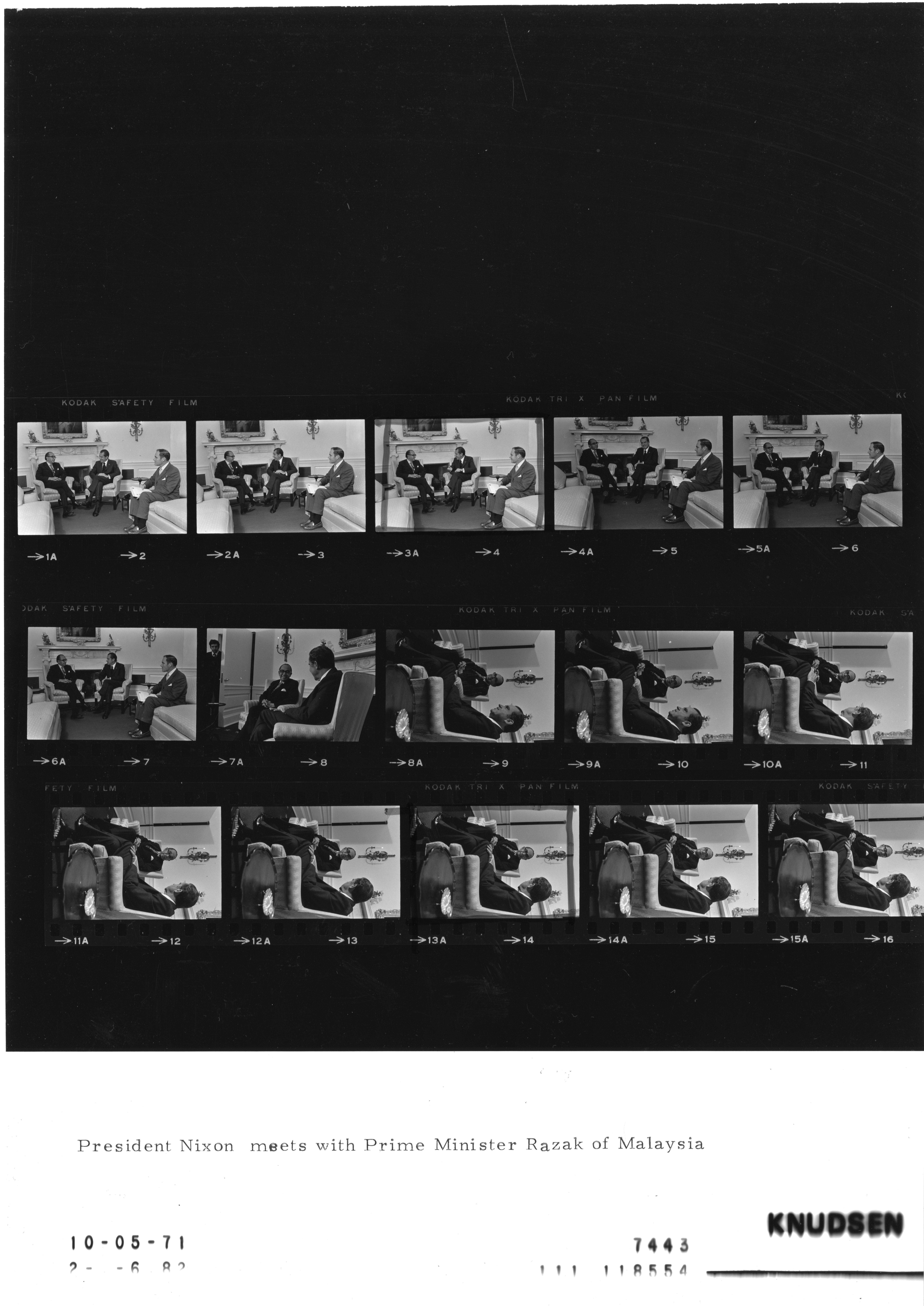 - Frame(s): WHPO-7443-01A-15A, President Nixon, Malaysian Prime Minister Tun Abdul Razak, and Brig. Gen. Alexander Haig, Jr. seated informally during an Oval Office meeting. 10/5/1971, Washington, D.C. White House, Oval Office. President Nixon, Gen. Alexander M. Haig, Jr., Tun Abdul Razak.