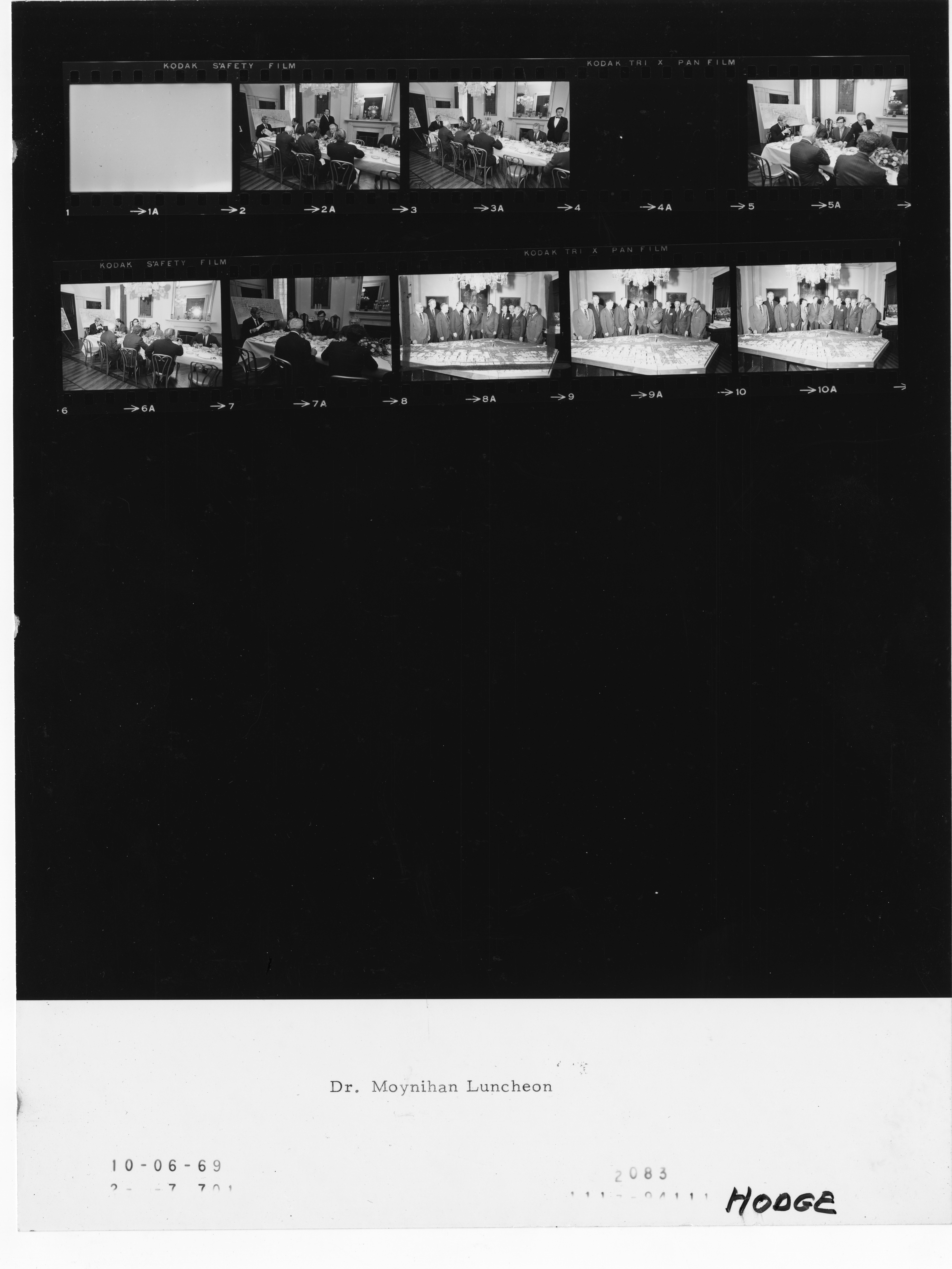- Frame(s): WHPO-2083-02-07, Luncheon hosted by Daniel Patrick Moynihan, attended by George Romney, Walter Washington, and other unidentified men. 10/6/1969, Washington, D.C. unknown. Moynihan, George Romney, Walter Washington, unidentified men.
