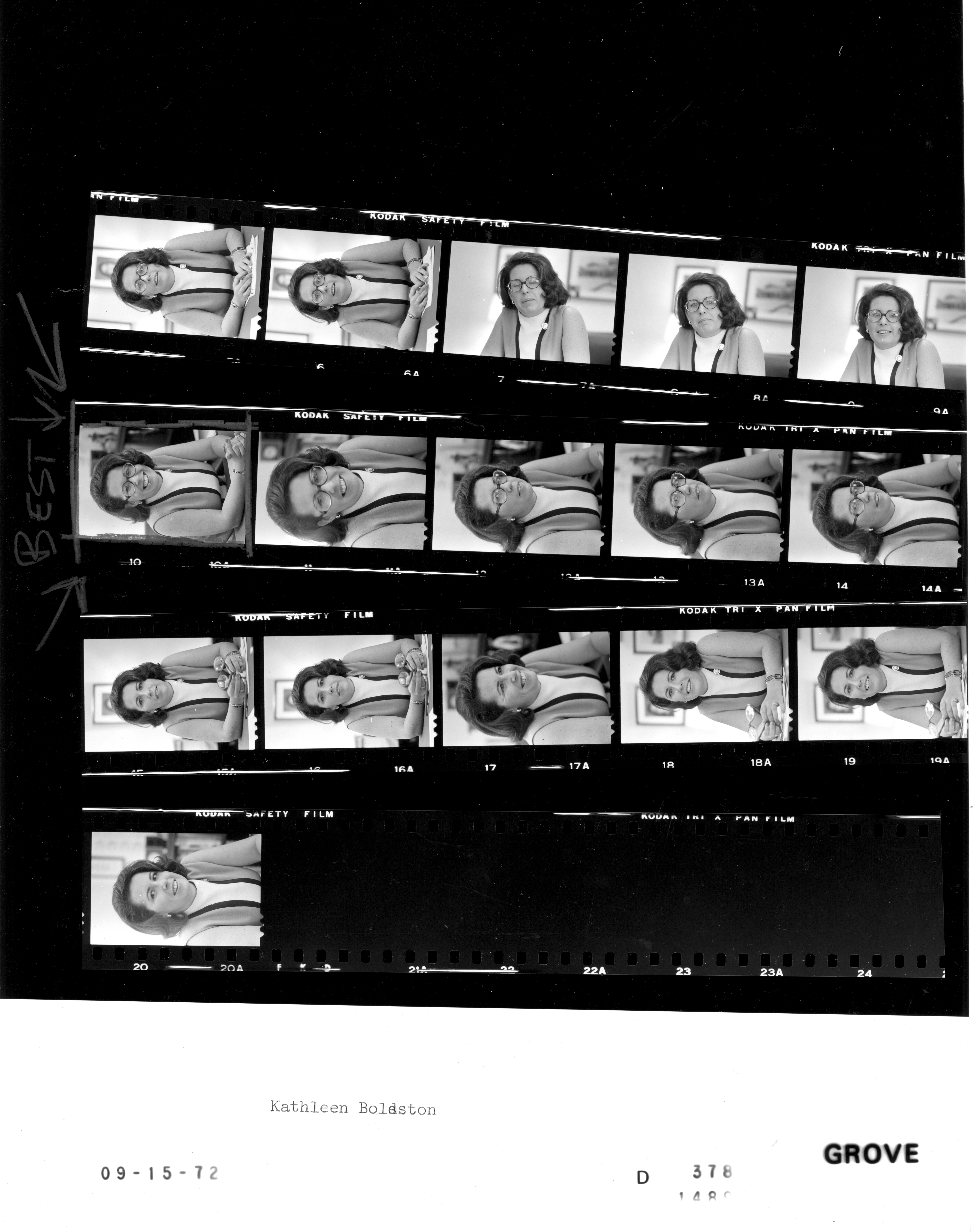 - Frame(s): WHPO-D0378-, Head and shoulders shots of Kathleen Boldston. 9/15/1972, Washington, D.C. unknown. Kathleen Boldston.