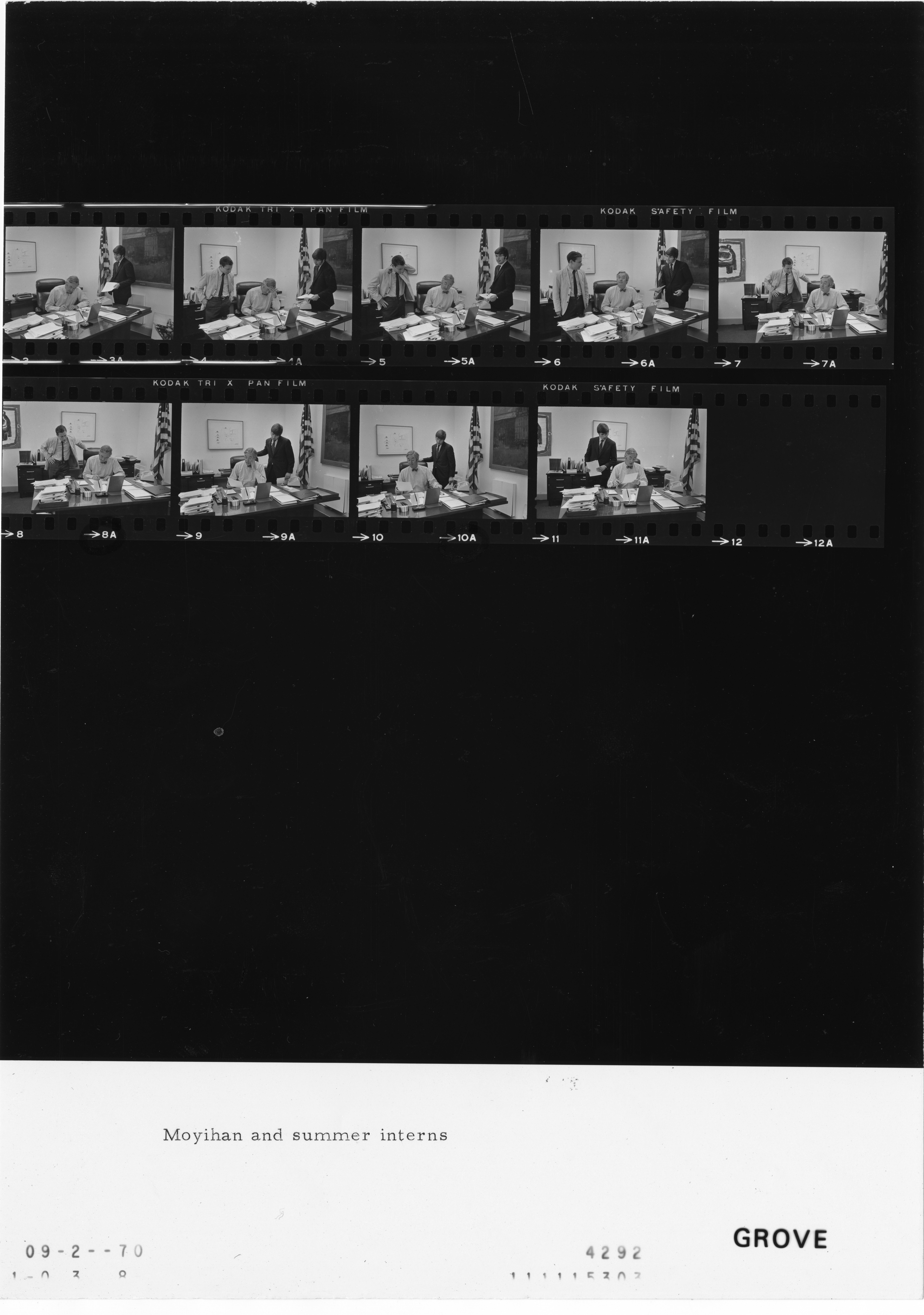 - Frame(s): WHPO-4292-, Daniel Patrick Moynihan with interns. 9/2/1970, Washington, D.C. Daniel Patrick Moynihan, Presidential Counsel, and unidentified summer interns.