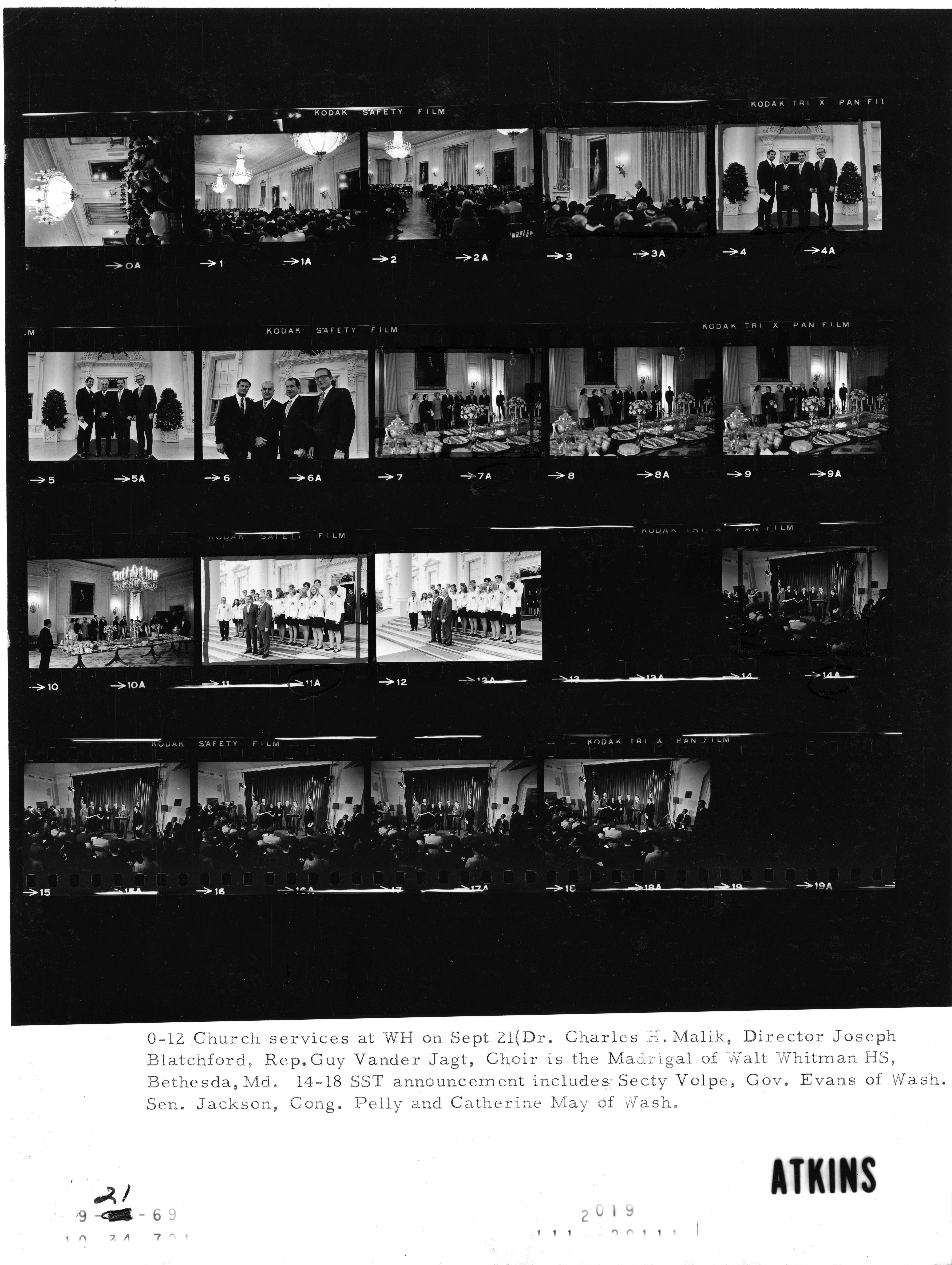 - Frame(s): WHPO-2018-01A-20A, President Nixon and government officials announcing the decision to green light development of the supersonic transport. 9/23/1969, Washington, D.C. White House, Roosevelt Room. President Nixon, John Volpe, Henry Jackson, Gov. Daniel Evans, senators, representatives, business leaders.
