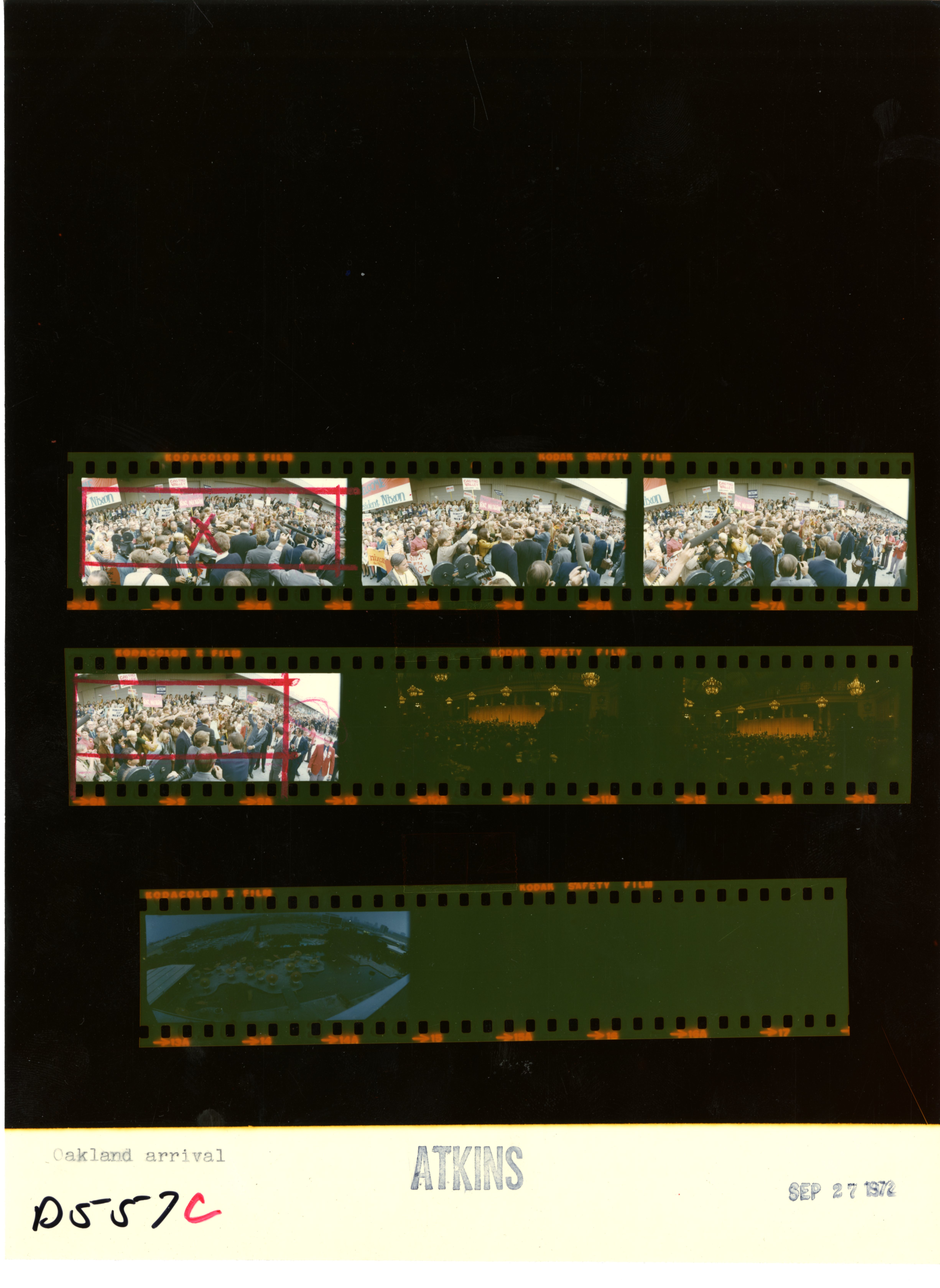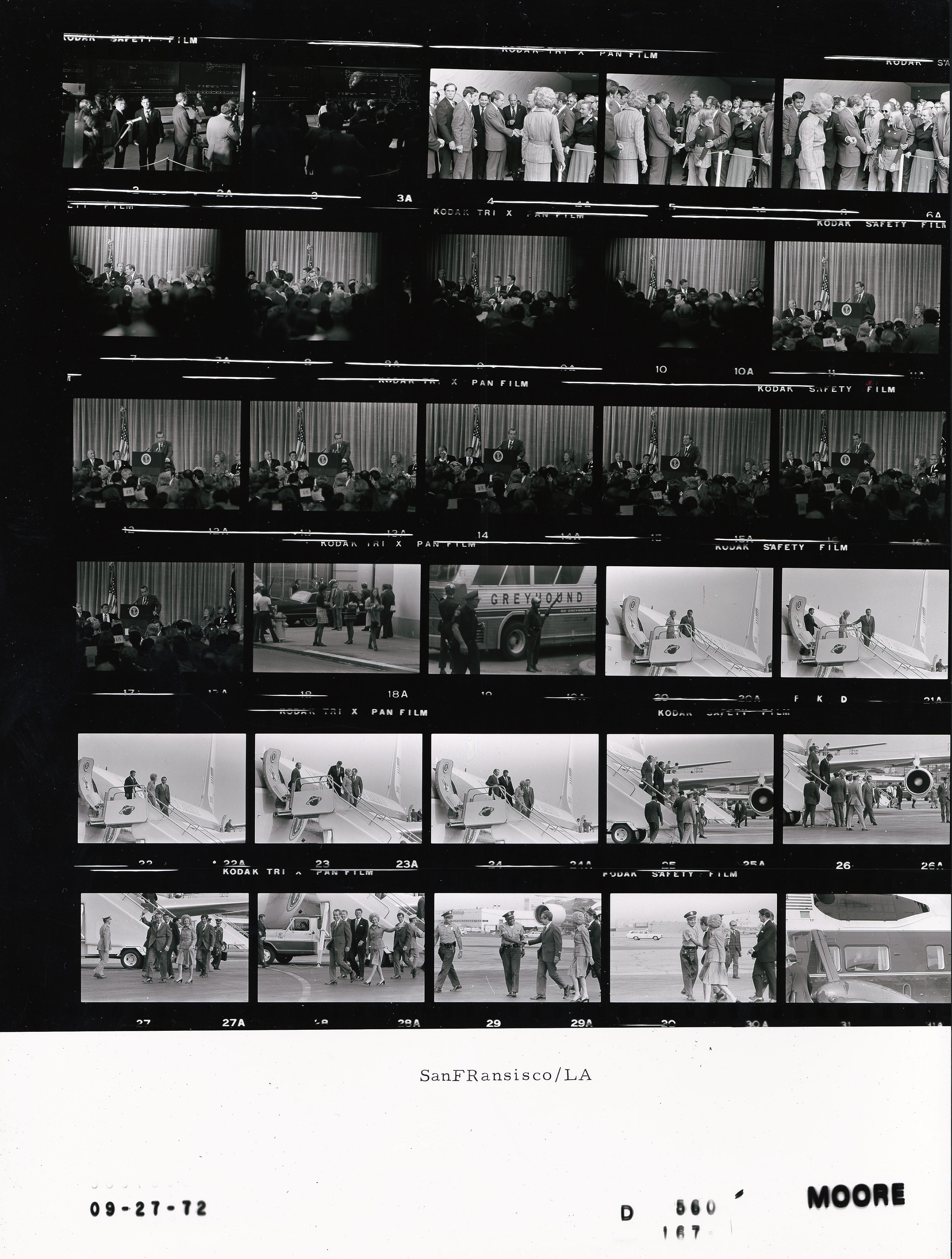 - Frame(s): WHPO-D0557-04-09, President Nixon greeting the crowd upon arrival at the airport. 9/27/1972, Oakland, San Francisco, California Oakland International Airport, tarmac. President Nixon, crowd, officials.