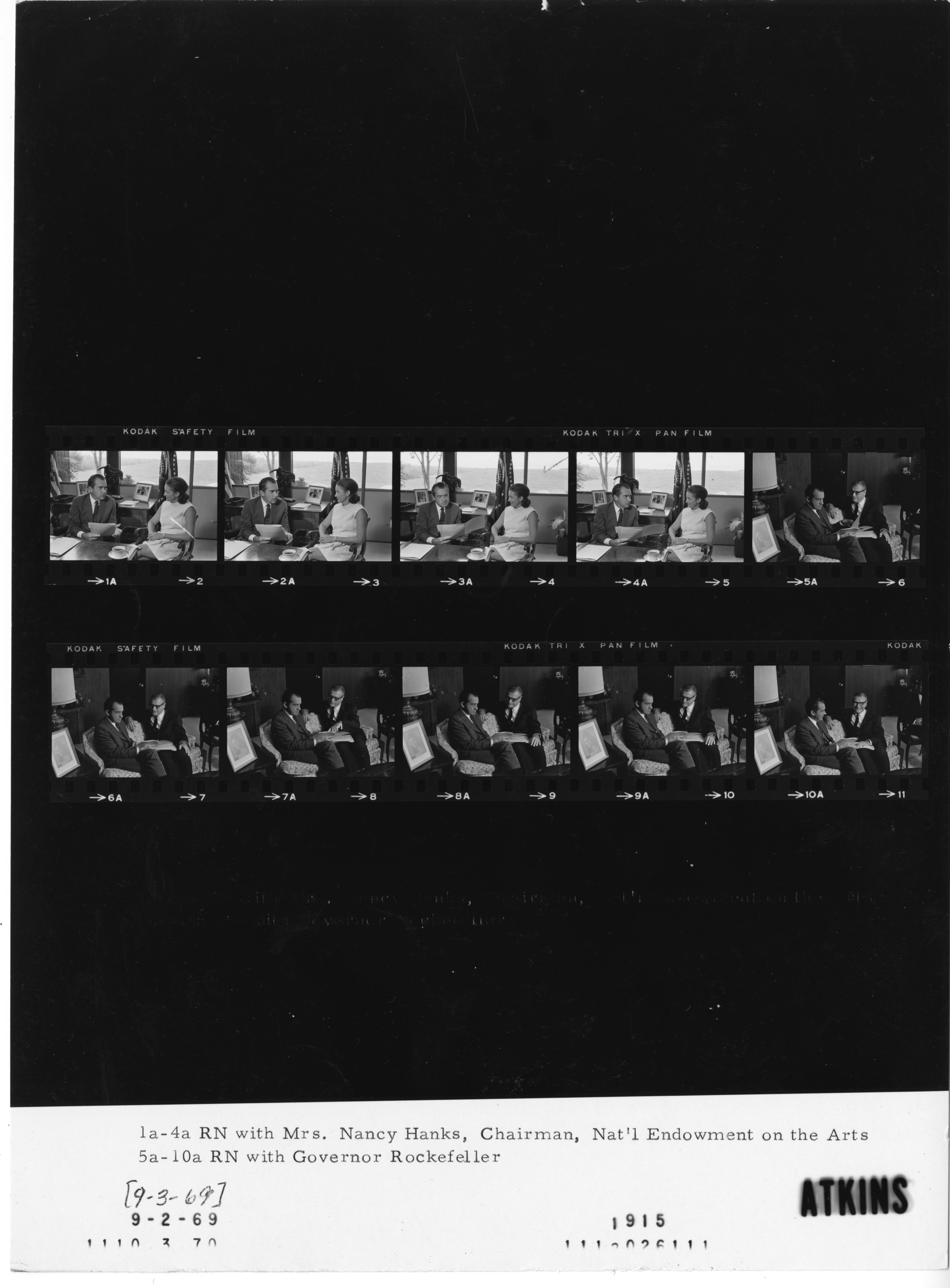 - Frame(s): WHPO-1915-01A-04A, President Nixon sitting at his Western White House office desk during a meeting with Nancy Hanks, Chairman of the National Endowment for the Arts. 9/3/1969, San Clemente, California Presidential Office, Western White House, La Casa Pacifica. President Nixon, Mrs. Nancy Hanks.