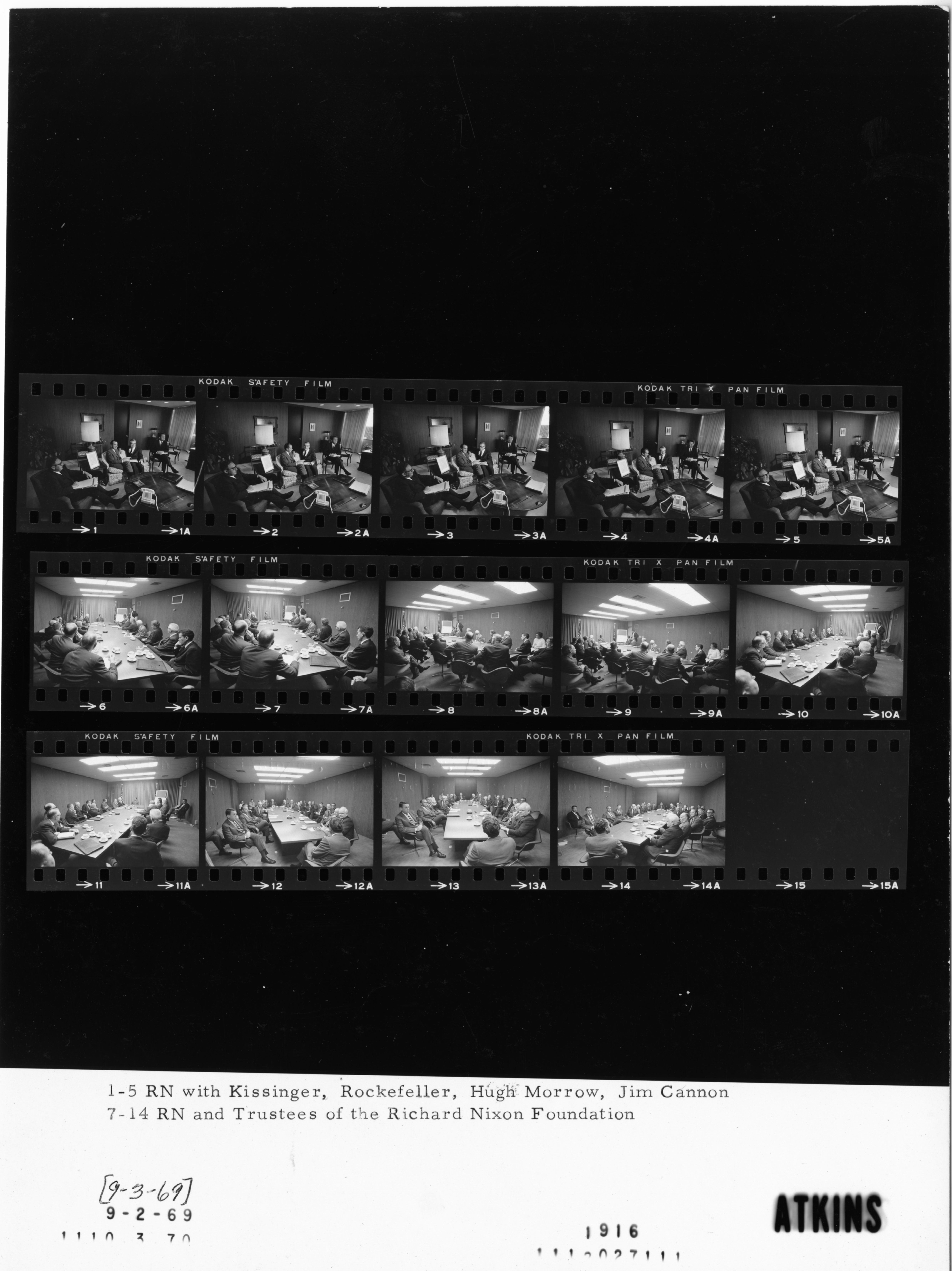 - Frame(s): WHPO-1916-01-05, President Nixon seated informally with Henry Kissinger, Nelson Rockefeller, and James Cannon. 9/3/1969, San Clemente, California Presidential Office, Western White House, La Casa Pacifica. President Nixon, Henry Kissinger, Nelson Rockefeller, James Cannon.