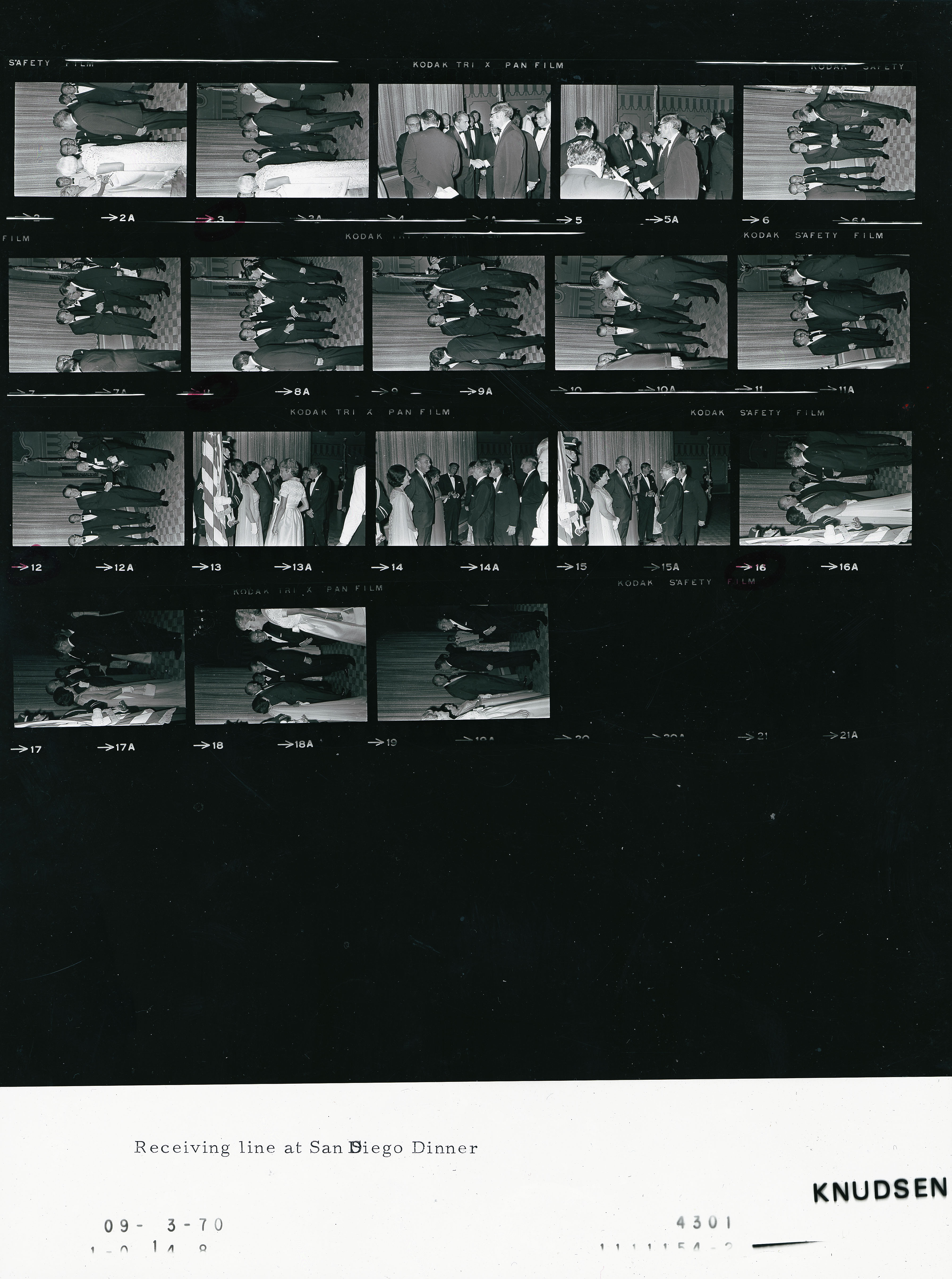 - Frame(s): WHPO-4301-, President Nixon hosts a black tie dinner honoring Mexico President Diaz Ordaz. Among the guests are former President Lyndon Baines Johnson (LBJ) & Lady Bird Johnson, Governor Ronald Reagan, Nancy Reagan, General Omar Bradley, Ambassador Emil Mosbacher and Mrs. Mosbacher. 9/3/1970, Coronado, California Hotel del Coronado, Coronado, California. President & Mrs. Richard Nixon, President Gustavo Diaz Ordaz of Mexico, his daughter Mrs. Nasta, Lyndon Baines Johnson, Mrs. Lady Bird Johnson, Ronald Reagan, Mrs. Nancy Reagan, General Omar Bradley, Ambassador Emil Mosbacher, Mrs. Mosbacher, unidentified guests.