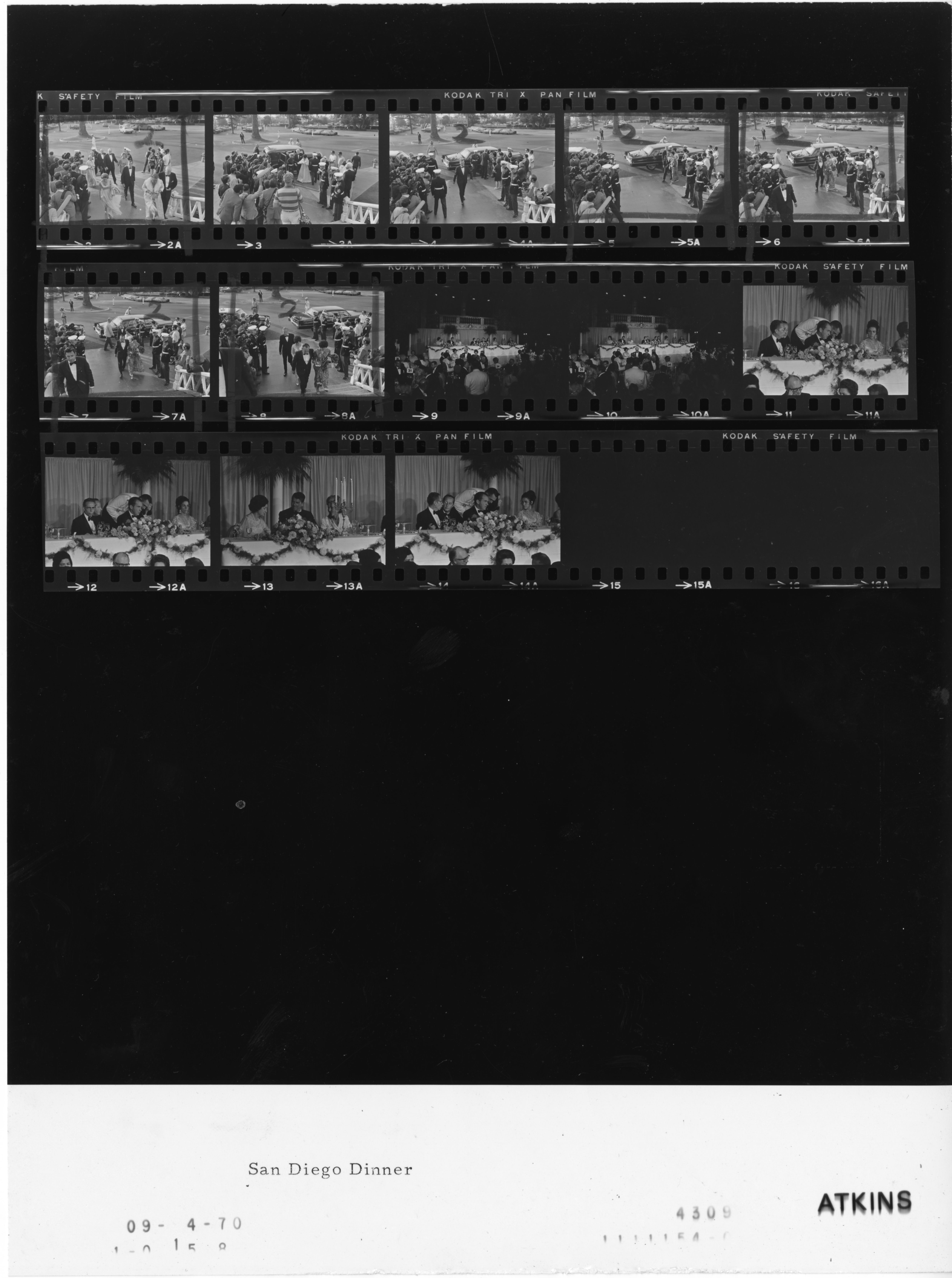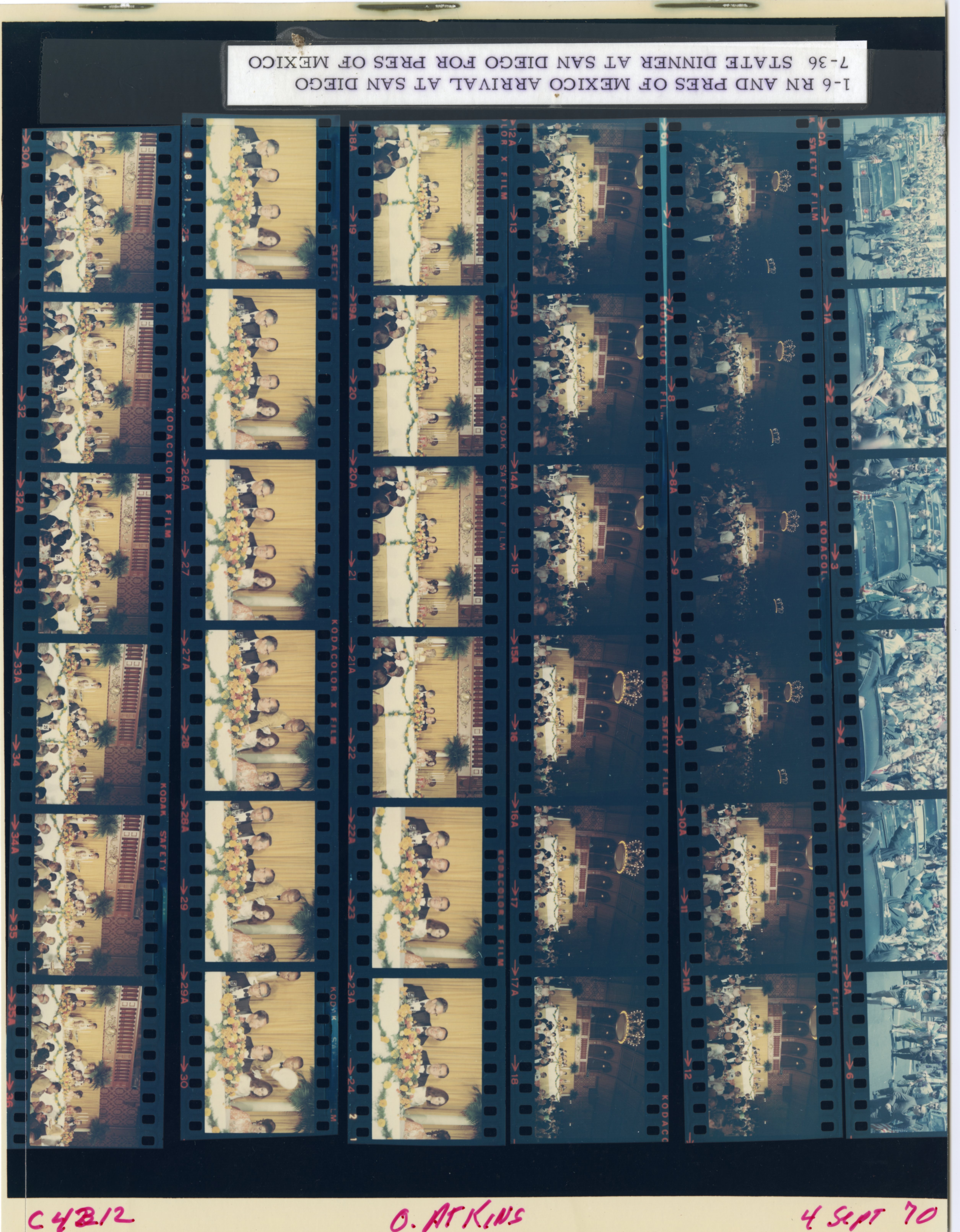 - Frame(s): WHPO-4304-09A-12A, President Nixon stands to speak from the dias head table during a black tie state dinner honoring President Diaz Ordaz of Mexico. Longshot viewed from back of room behind guests. 9/3/1970, Coronado, California Hotel del Coronado, Crown Room. President Nixon; the President of the United State of Mexico, Diaz Ordaz; Governor Ronald Reagan, Nancy Reagan, entertainers.