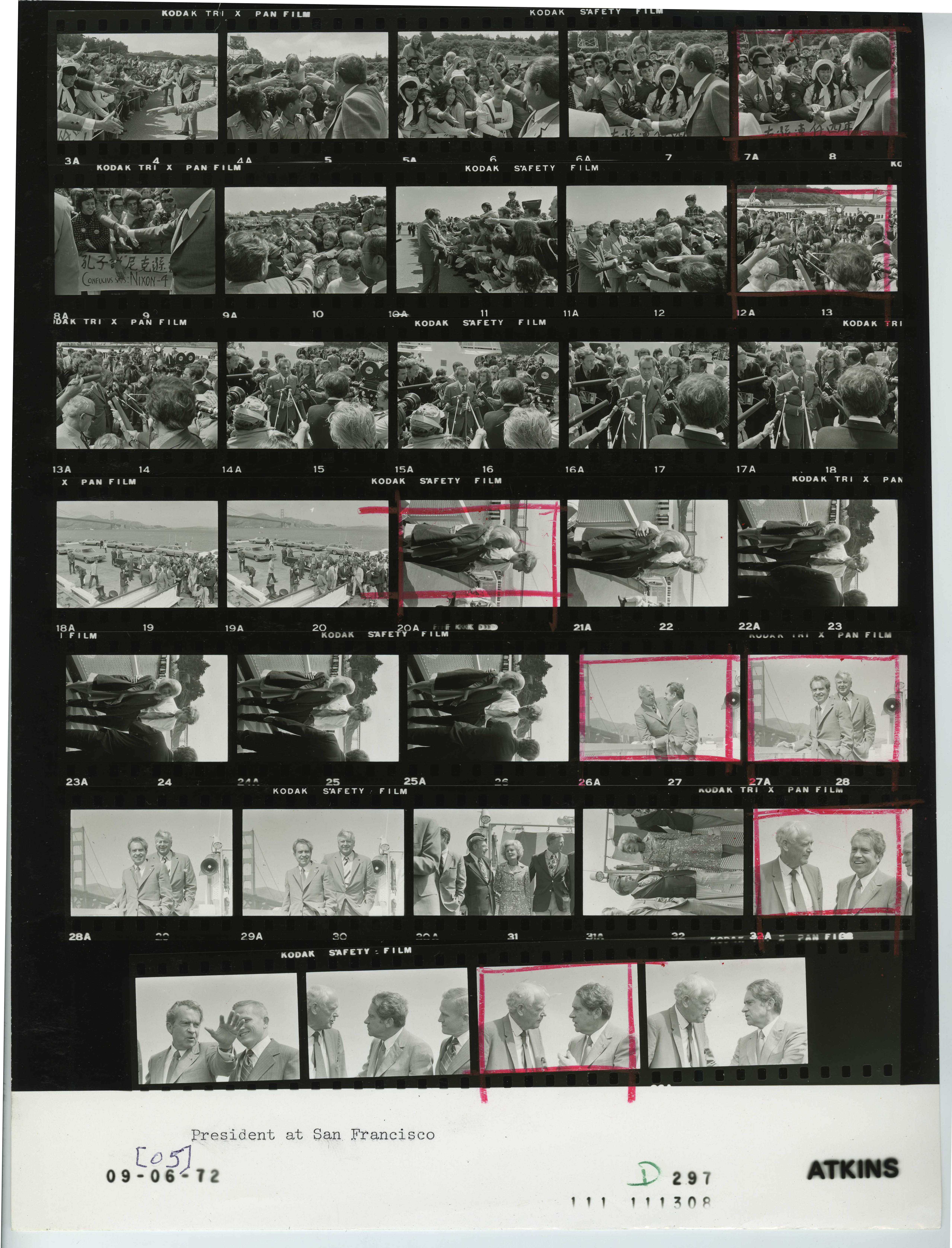 - Frame(s): WHPO-D0298-09A-18A, President Nixon shaking hands with persons and leaving the pier site. 9/5/1972, San Francisco , California room, deck, ferry boat; room, landing, Fort Point Pier; tarmac, airport. President Nixon, Pat Nixon, committee members, unidentified persons, press corps members, Capt. & Mrs. Charles Larken, Adm. & Mrs. Mark Whalen.