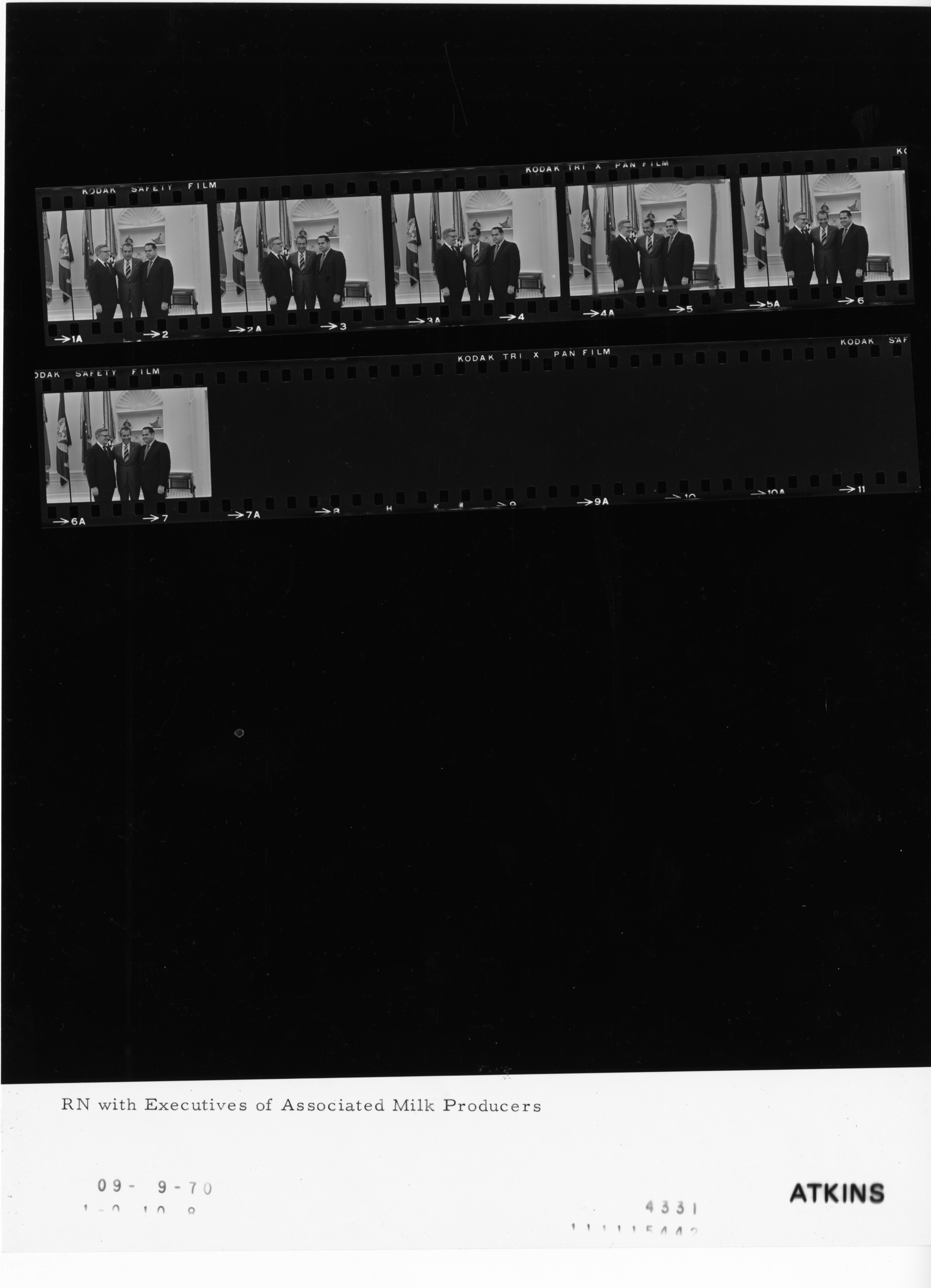 - Frame(s): WHPO-4331-, President Nixon with executives of the Associated Milk Producers, Inc. 9/9/1970, Washington, D.C. White House, Oval Office. President Nixon and two unidentified individuals. (Possibly Harold S. Nelson, GM, Associated Milk Producers, Inc., and David L Parr, Special Assistant to the General Manager.